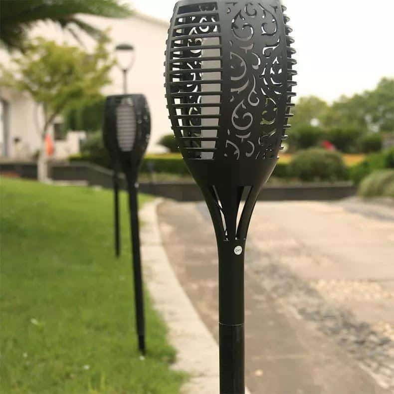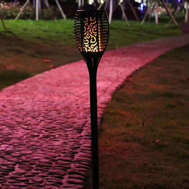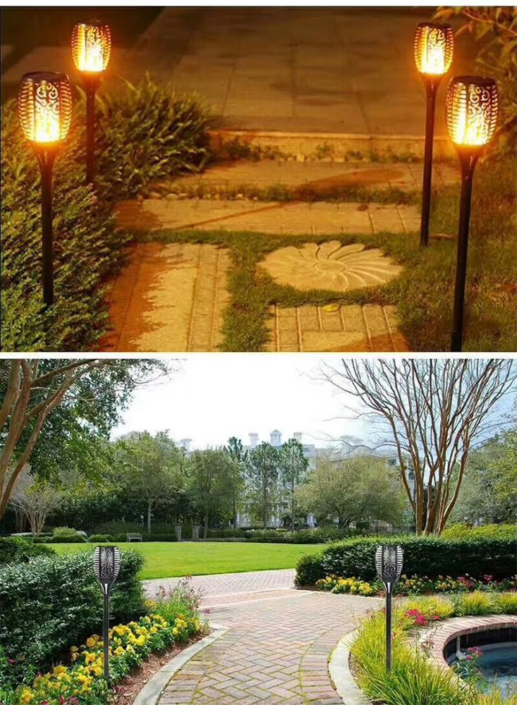 Solcelle flamme faklen kan placeres på græsplæner, haver, blomsterpotter, bænke, stier, dæk og endda bruges til udendørs aktiviteter, såsom fester, bryllupper, jul, Halloween osv.