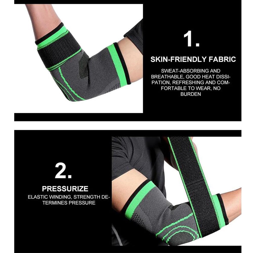 - Åndbart Stof: Fremstillet af et højelastisk stof, der tillader huden at ånde og holder albuen tør og komfortabel.