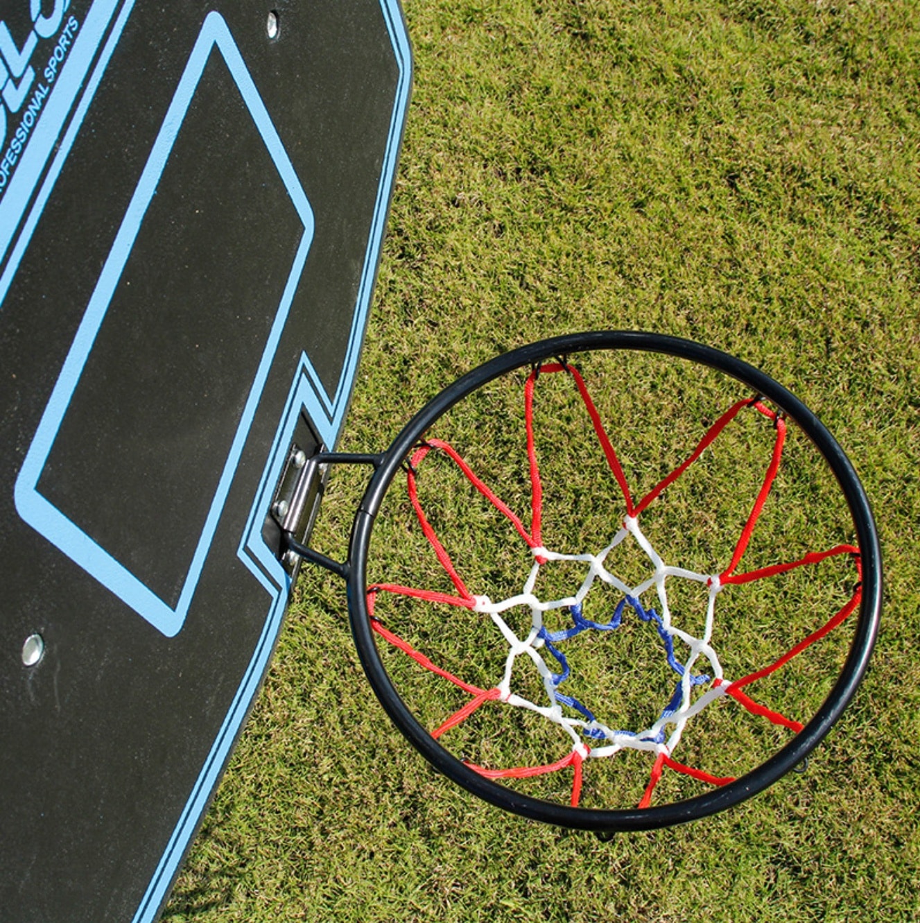 Basketballkurven måler 34 cm i diameter, så den passer til en standard basketballbold. Der må ikke hænges i kurven, da dette kan skade pladen.