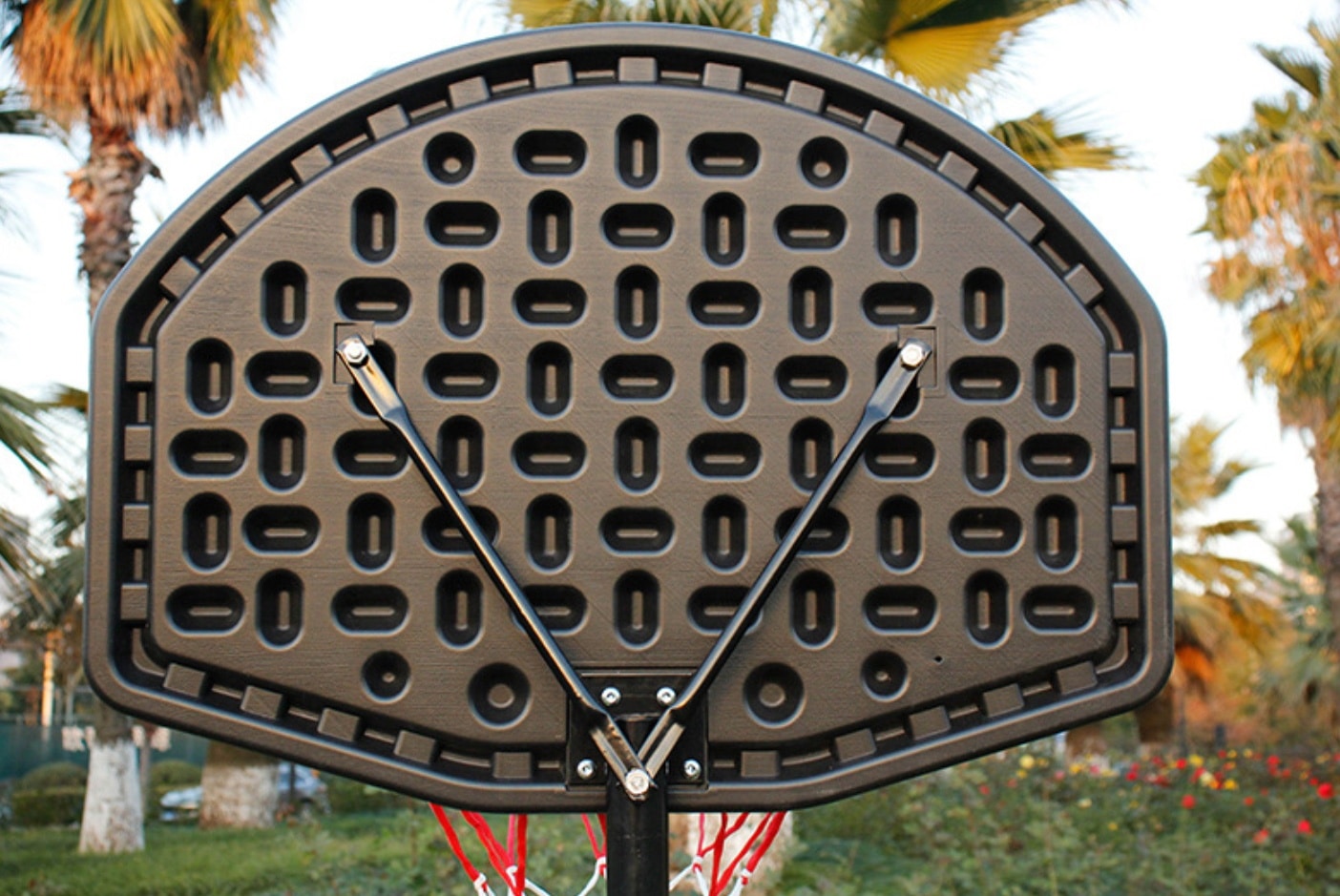 Basketballkurven og standeren er konstrueret efter at kunne holde til det danske vejr – bag pladen er fremstillet i polyætylen og polypropylen, kurven er i sort pulverlakeret stål, og nettet er vejrbestandigt. En kurv og stander som kan bruges flittigt i mange år uden at blive slidt.