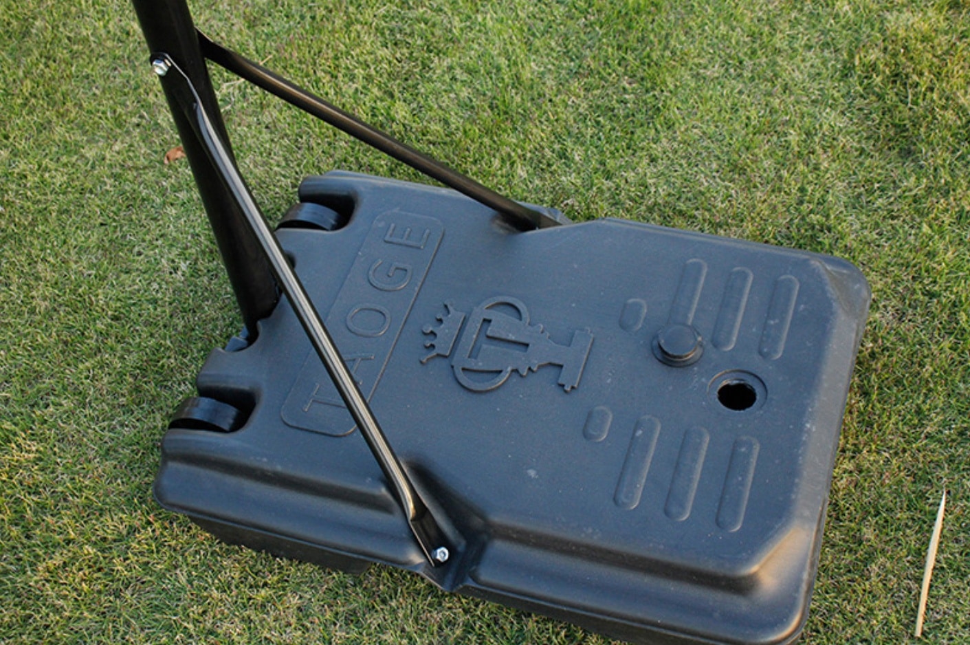 Vores basketballkurv m/stander leveres med en højdejusterbar teleskopstang, så du kan justere den alt efter alder og evner. Med de let gående hjul kan basketballkurven hurtigt og ubesværet placeres i den ønskede position. Foden kan du fylde med vand (25 liter) eller sand (30 kg.) for at stabilisere standeren – og samtidig gør hjulene det nemt at flytte standeren, når spillet er slut.