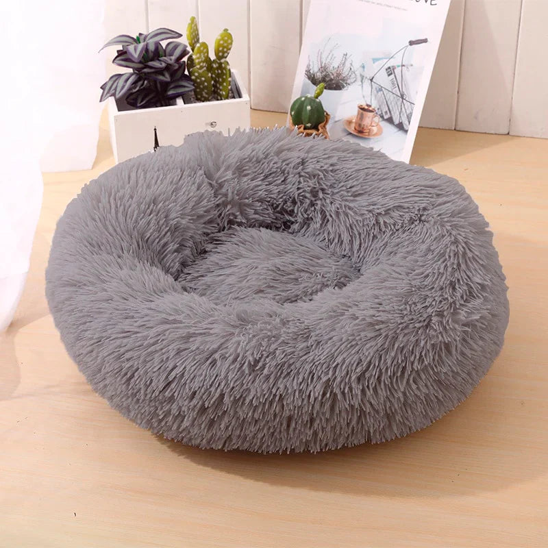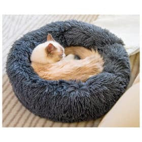 Giv din kat en god og tryg søvn med vores bløde donut katte seng. Sengen er superblød og udstyret med en hævet kant, der er med til at skabe tryghed og samtidig giver god støtte til hoved og nakke. Puden er ideel til kæledyr med angst.