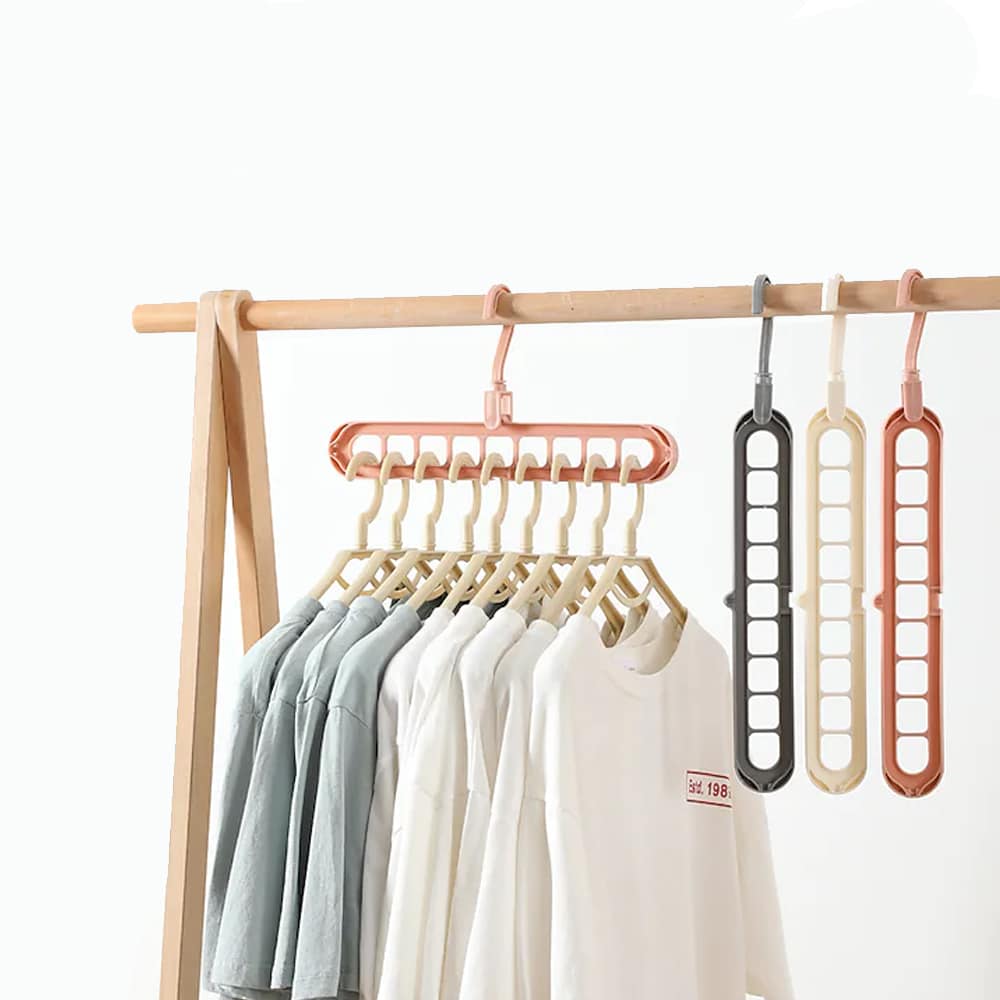 Slip for at få dit nystrøget tøj krøllet - denne bøjle organizer er simpelthen et must-have i ethvert klædeskab, bøjlen kan hænges skrå ned og derved både spare plads men også undgå tøjet bliver krøllet. Der kan hænges 9 beklædningsdele på bøjlen.