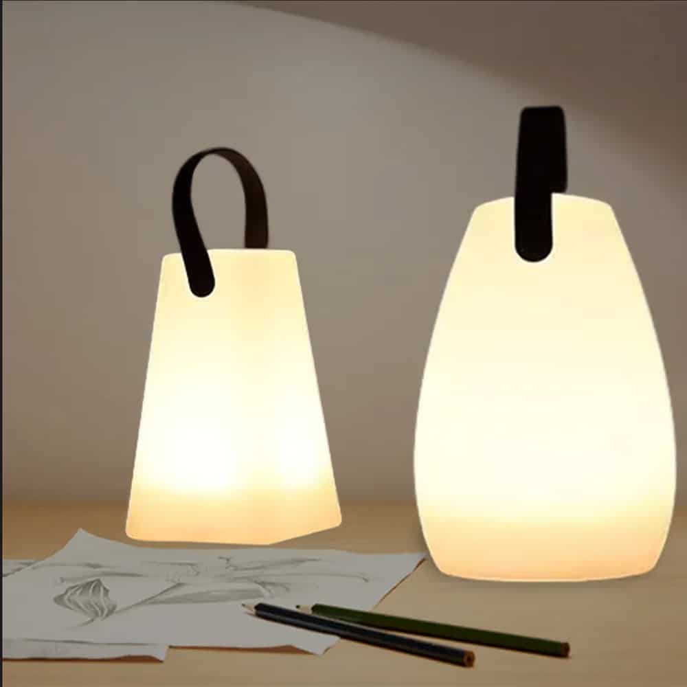 Bordlampe LED med hank - firkantet eller oval - RGB farveskift -