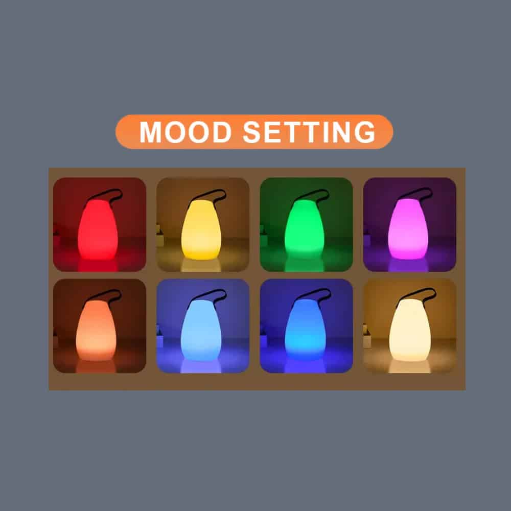 Du får her en virkelig smuk, batteridrevet (genopladeligt via USB) touch bordlampe med fjernbetjening, i et stilfuldt og funktionelt design med hank og ikke mindst med en super cool gimmick; forskellige RGB-farveskift der med et enkelt klik på lampen kan udskiftes efter eget ønske. En lampe der med sine forskellige farver er perfekt til at skabe stemning på værelset eller ude på terrassen.