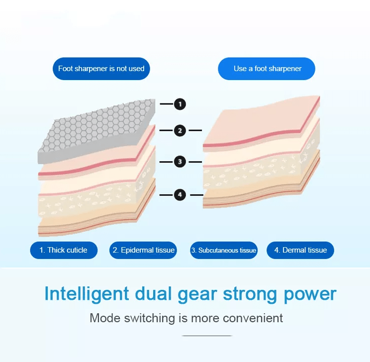 - Fjerner effektivt hård og død hud under hele foden, neglebånd og plejer dine fødder