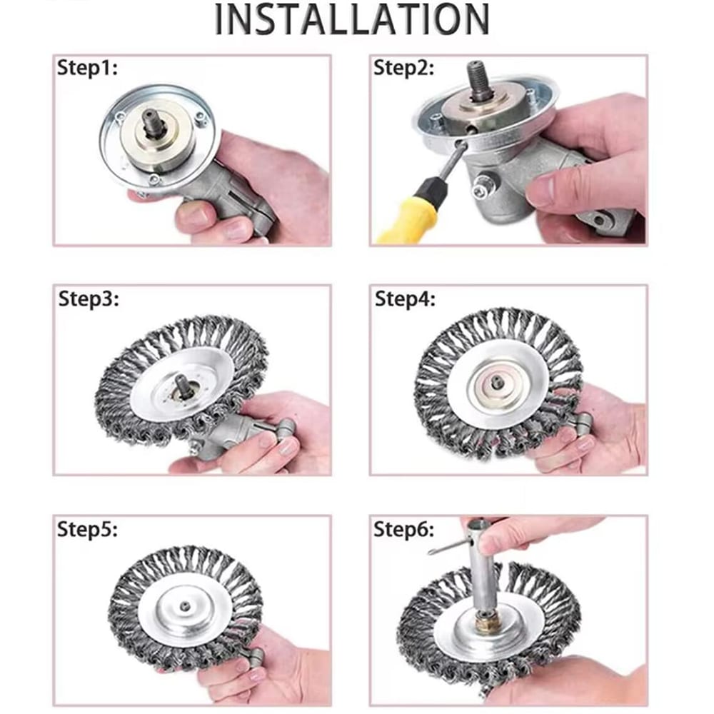 Børsten kan nemt monteres på de fleste standardtrimmere og vinkelslibere, og dens kraftige stålwire sikrer lang holdbarhed, selv ved krævende brug. Uanset om du skal fjerne ukrudt fra indkørslen eller polere metaloverflader, er denne børste det perfekte værktøj til opgaven.