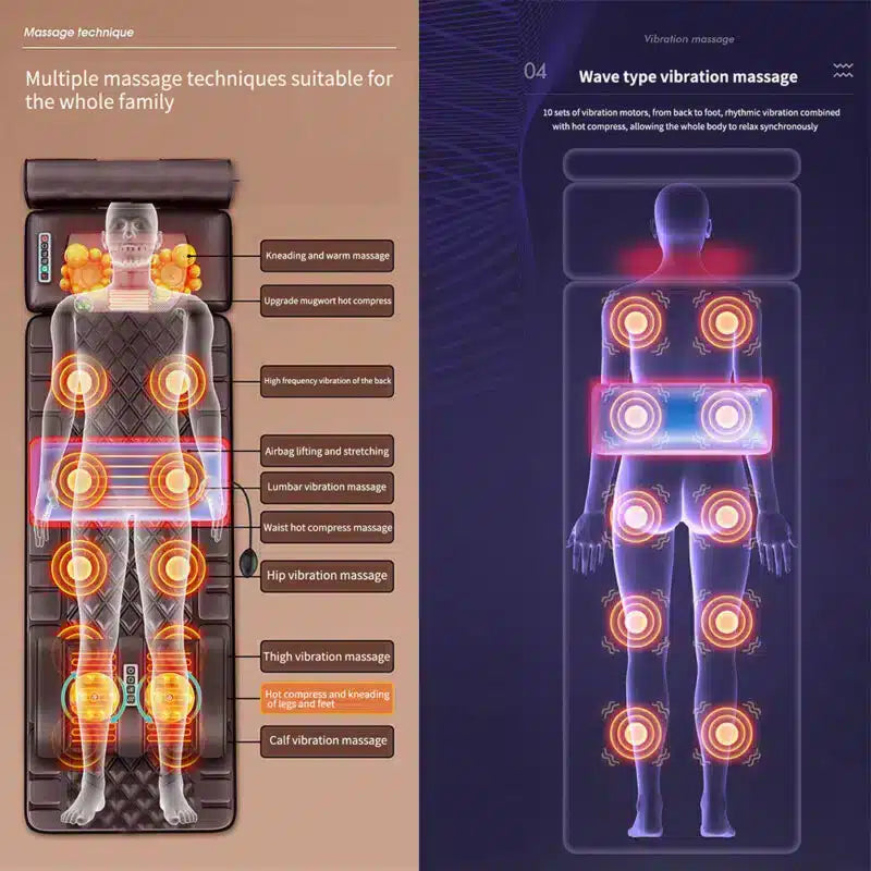 Elektrisk Massagemåtte m/10 Zoner - Total afslapning fra nakke til fødder