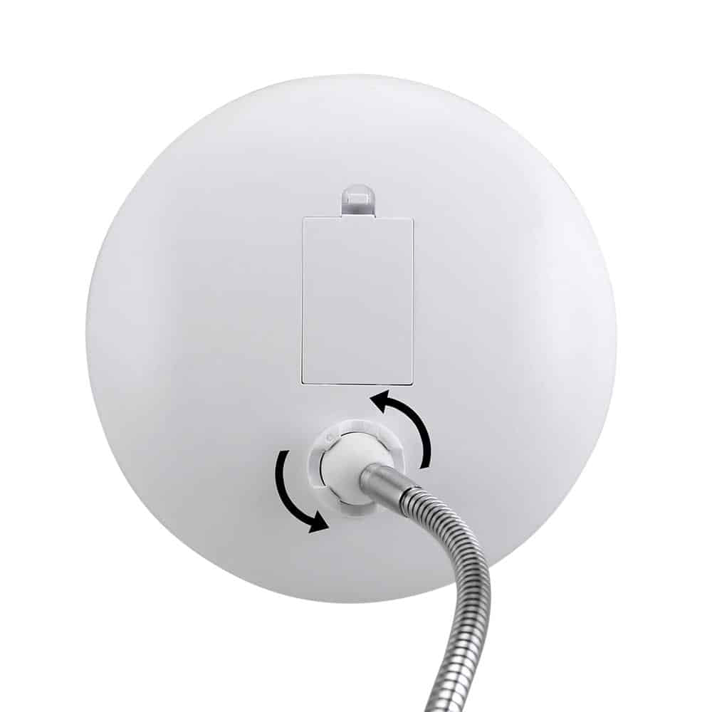 Smart makeupspejl med hvidt LED lys, zoom funktion, fleksibel arm og en stærk sugekop lige til at sætte fast på badeværelsesspejlet, så du får alle detaljer med, uanset om du skal lægge makeup på eller kæresten skal barbere skægget.