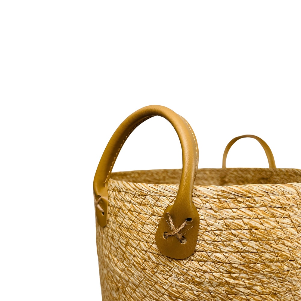 De stilfulde kunstlæderhåndtag er praktiske og giver et godt greb, hvilket gør det nemt at flytte kurvene rundt. Håndtagene tilføjer også en flot kontrast til søgræssets naturlige farve, hvilket gør kurvene til et æstetisk blikfang i ethvert rum.
