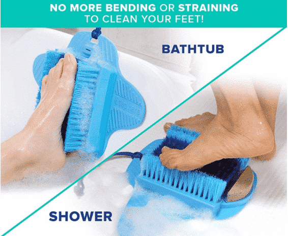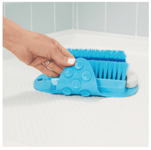 Vi alle har prøvet det - at stå der, under bruseren, på ét ben for at skrubbe den anden - ikke særligt behageligt og slet ikke sikkert. Med sugekopper på undersiden står vores Fresh Feet sikkert på badeværelsesgulvet, og du kan i ro og mag vaske og massere fødderne, effektivt og behageligt.