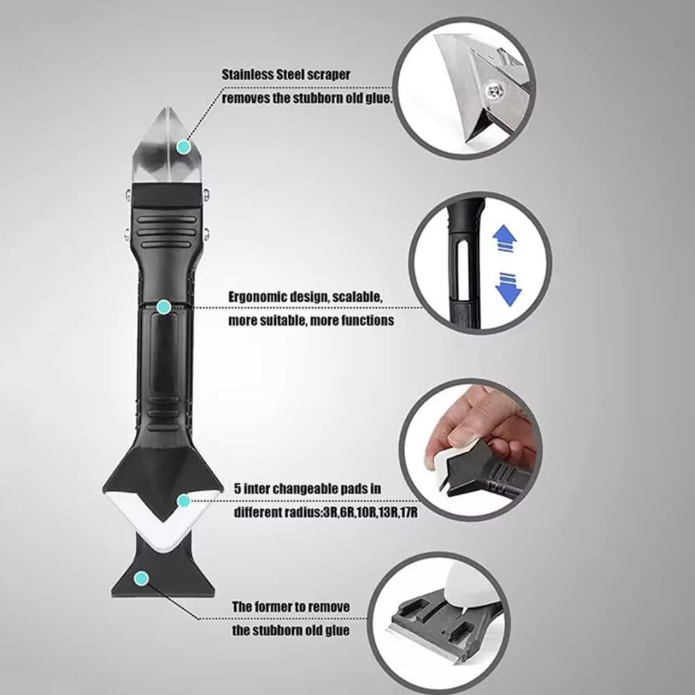 - Multifunktionel: Kombinerer fugeskraber, spartel og rengøringsværktøj.