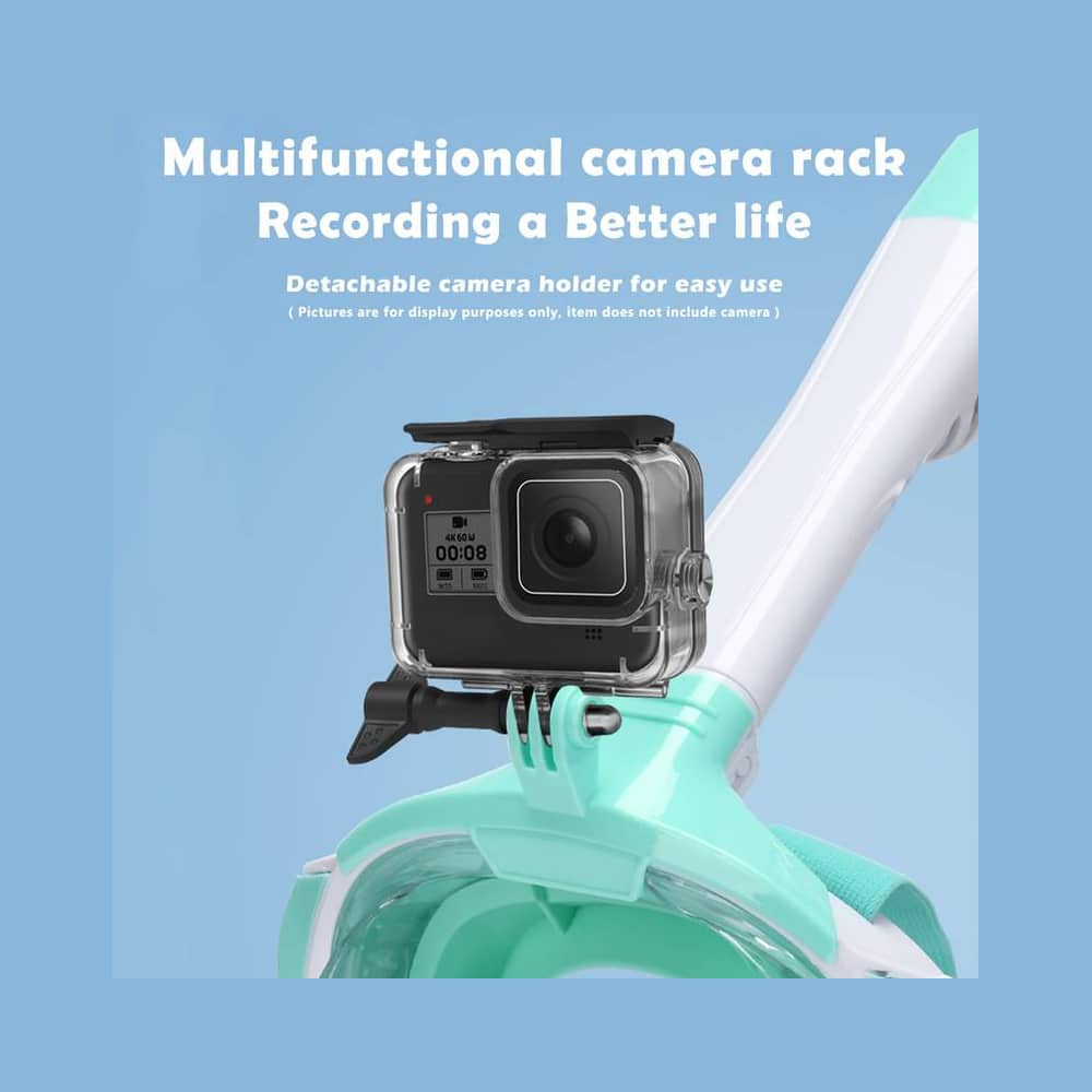 Forevig dine undervandsoplevelser med muligheden for at montere et GoPro eller lignende kamera på masken. Bemærk, kamera medfølger ikke, men holderen er allerede integreret.