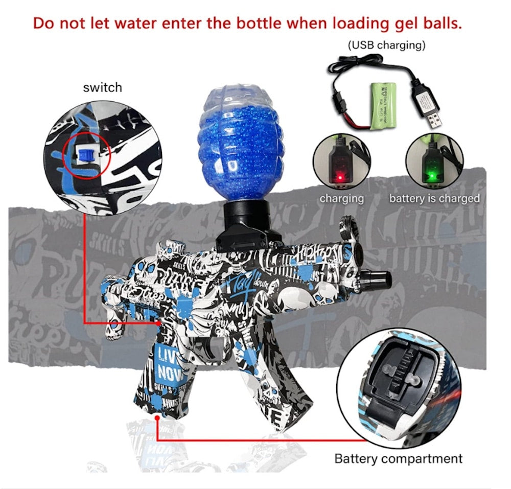 De elektriske Gel Blasters er blevet rigtig populær herhjemme i Danmark og det forstår vi godt! Gel Blasters er et sikkert skyde gadget der bruger bløde, vandbaserede gelékugler, som fordamper efter brug. Denne fantastiske gel blaster maskinpistol bringer en ny action fyldt dimension til skydespil for store og små med dens innovative design og højtydende funktioner.