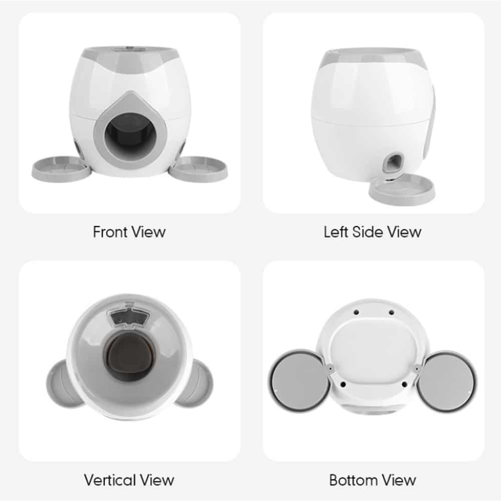 Tip: start med at kaste bolden til hunden, lade hunden komme retur med bolden til dig, og så kan du vise hunden at du putter bolden ned i legetøjet. Herefter vil godbidderne vælte ud i de grå skåle. Med tiden kan du træne din hund i, at den selv skal returnere bolden ned i legetøjet.