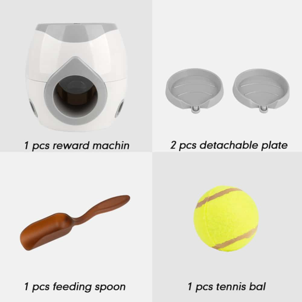 - Der medfølger 2 tennisbolde, ske og 2 foder skåle