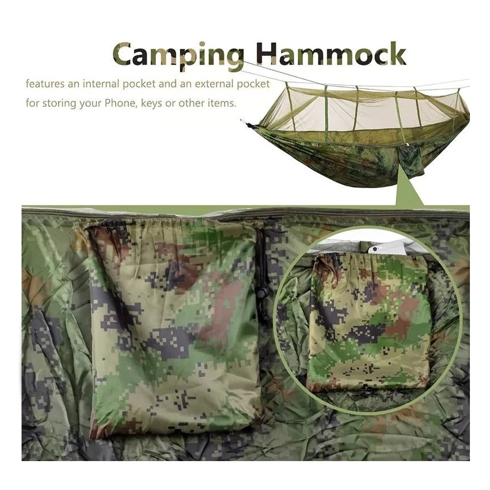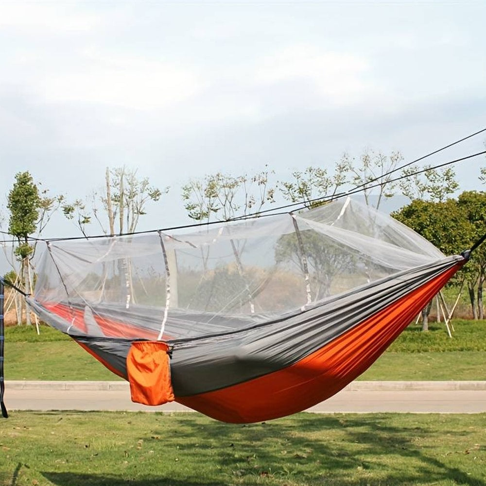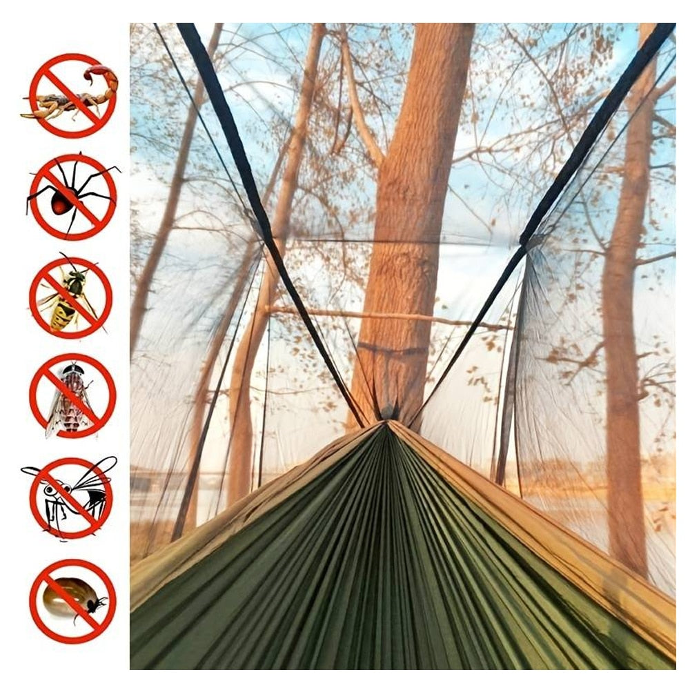 Hængekøje med myggenet (army, orange-grå, pink, grøn eller sort)