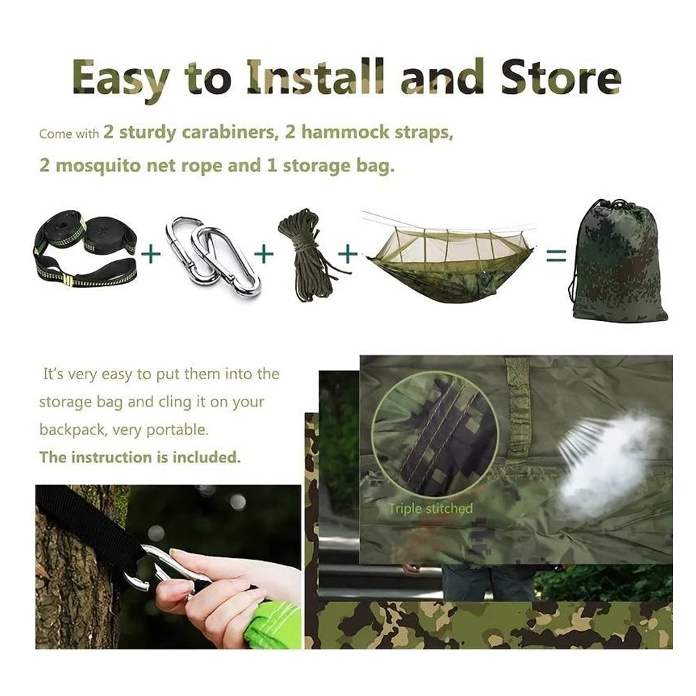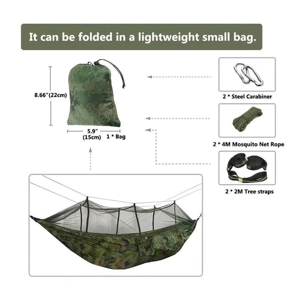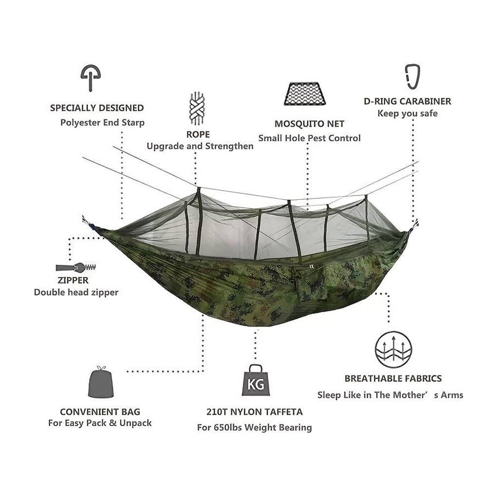 En virkelig god og slidstærk hængekøje med myggenet, der er yderst behagelig og funktionel og sikre en god nats søvn til alle der elsker outdoor livet. Perfekt til camping, rejser, vandreture eller bare en hyggelig stund i haven med en god bog. Hængekøjen er meget nem at samle og indeholder alle de nødvendige elementer til at hægte hængekøjen op med.
