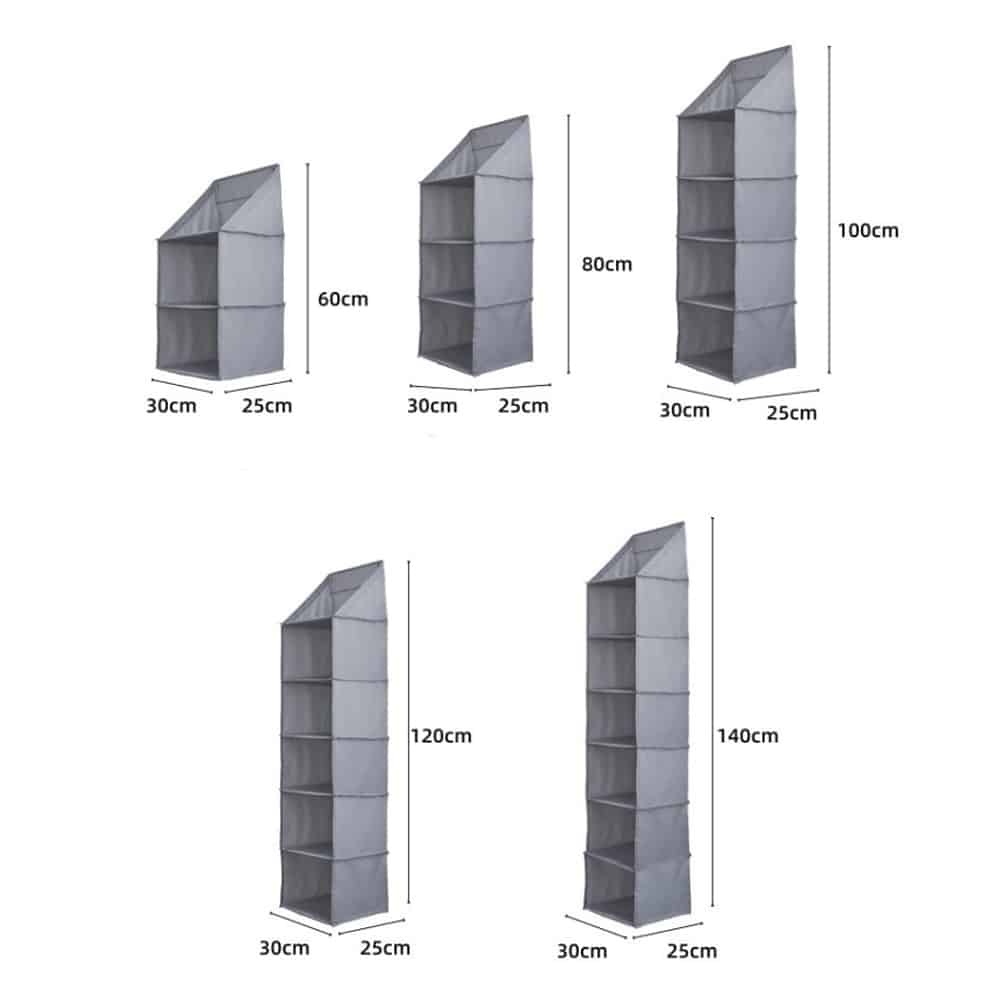 Dette alsidige, hængende opbevaringssystem i stof, med henholdsvis 2, 3, 4, 5 rum og 6 hylder, får det maksimale ud af begrænset plads, og samtidig opfylder dine forskellige opbevaringsbehov på en flot og elegant måde.