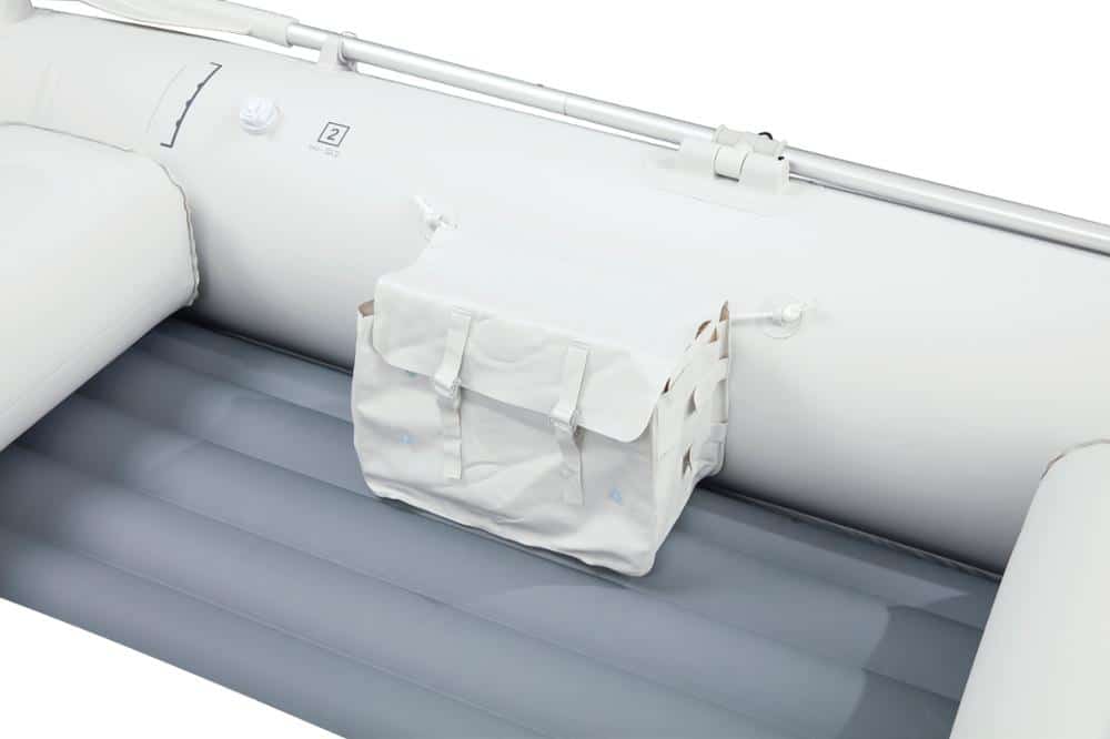 I denne gummibåd får du masser af ekstra features som fiskestangholder, opbevaringstaske, oppustelige sædehynder og lappegrej hvis du skulle være uheldig.