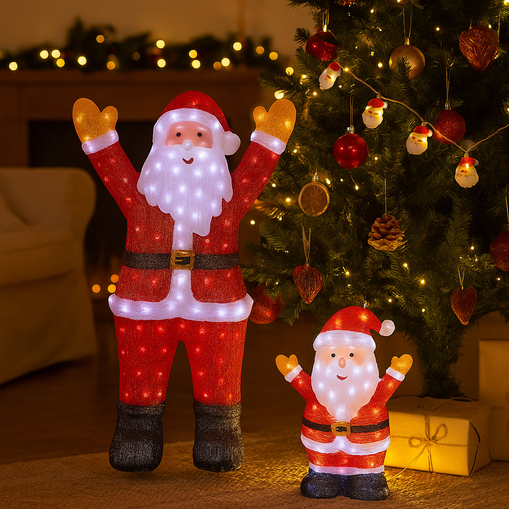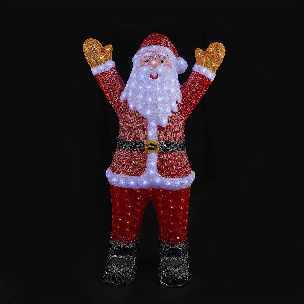 Få din egen strålende julestemning hjem i stuen med denne imponerende 120 cm høje Julemand i acryl! Vores lysende Santa bringer varmen og glæden ved julen ind i ethvert rum med sin kraftige røde dragt og hænderne strakt imod himlen i en varm velkomst.