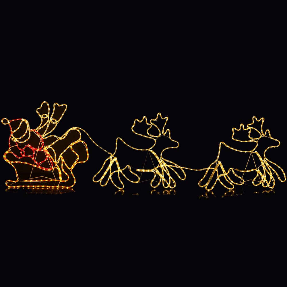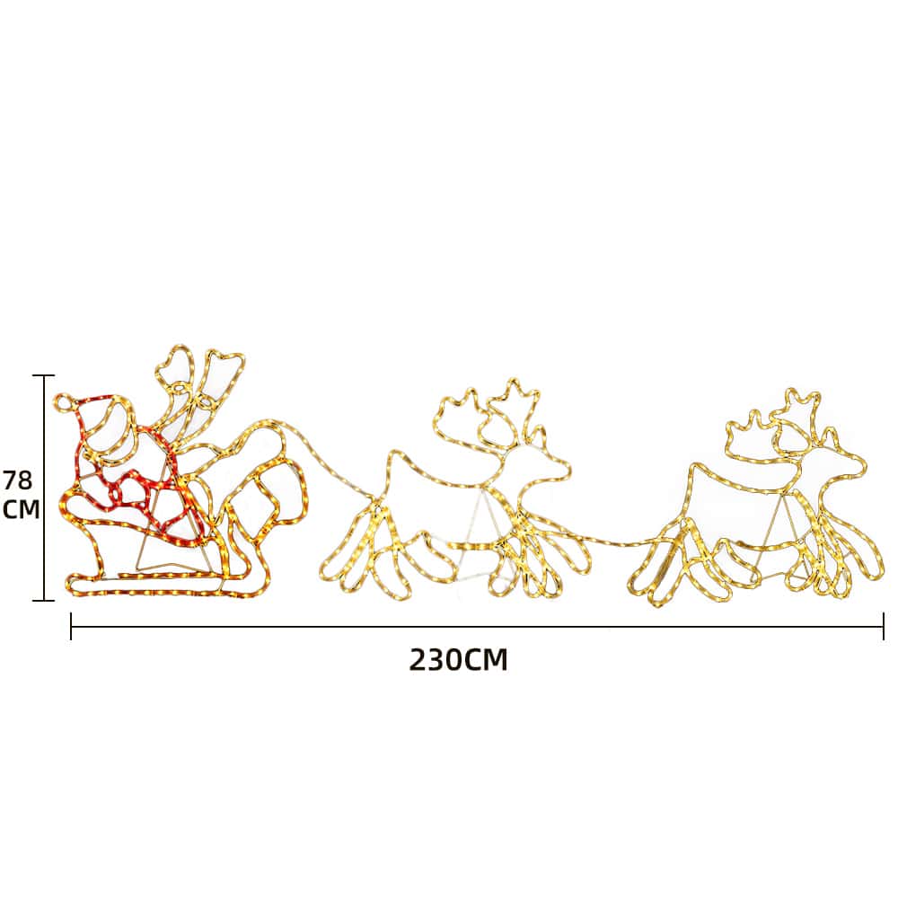 Skab en eventyrlig jul med vores fantastiske LED-kæde, med 2 rensdyr, kane og selveste julemanden ham selv! Denne stemningsfulde LED-kæde er nøglen til at bringe magien i julen til livs og forvandle dit hjem, have eller indkørsel til et strålende julelandskab.