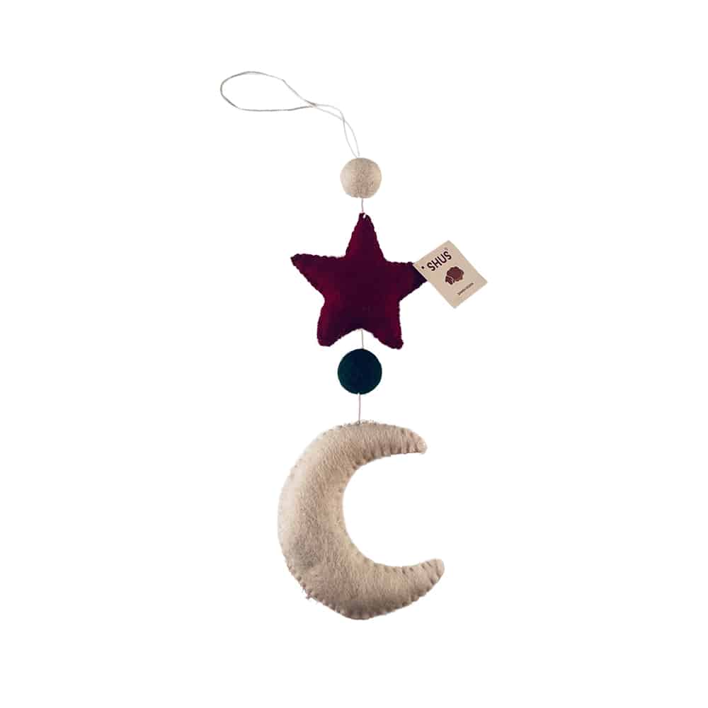 Julepynt Måne, Stjerne og planeter - Håndlavet - 100% ren uld