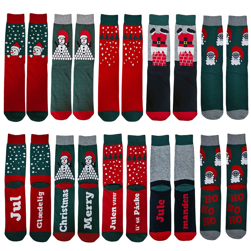 Julestrømper 5 par i forskellige motiver og farver