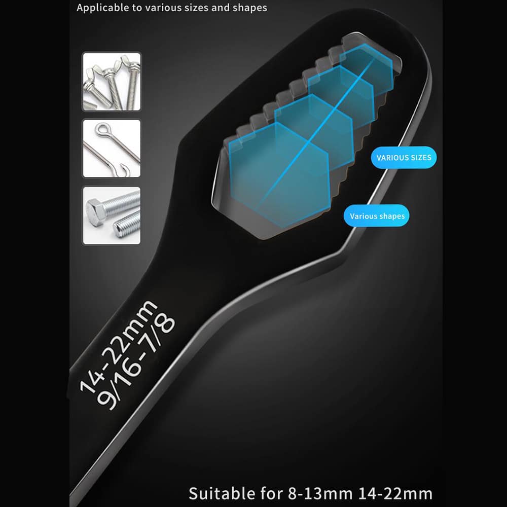 Leder du efter et værktøj, der kan håndtere enhver opgave, stor som lille? Vores justerbare multifunktionelle skruenøgle med dobbelt hoved fra 8-22mm er den perfekte løsning! Designet med en selvstrammende funktion, er den skabt til at give dig maksimal effektivitet, uanset hvad du arbejder på.