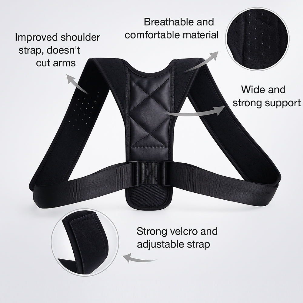 Ret din ryg, forbedr din holdning og reducer spændinger med denne lette og åndbare rygstøtte. Med et enkelt og effektivt posture correction band får du støtte til skuldre og øvre ryg, så du gradvist kan træne kroppen til en sundere og mere naturlig holdning.
