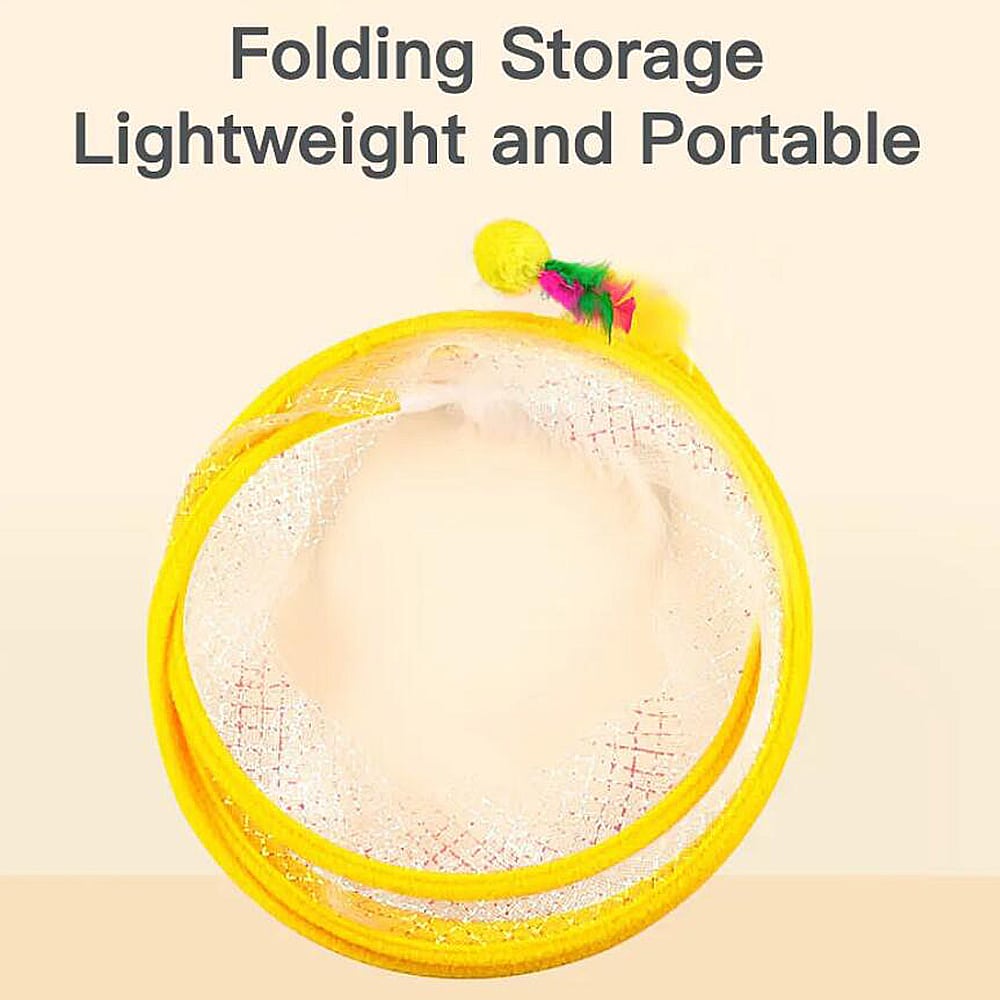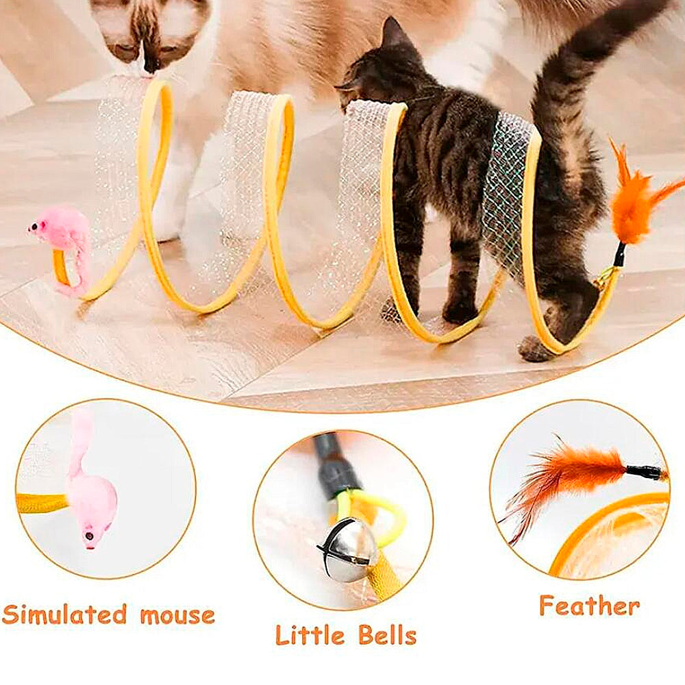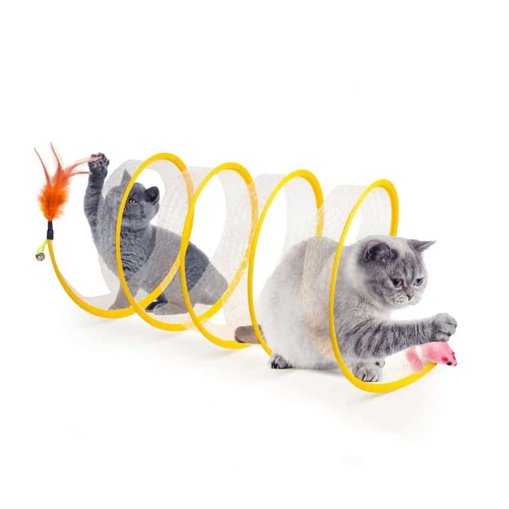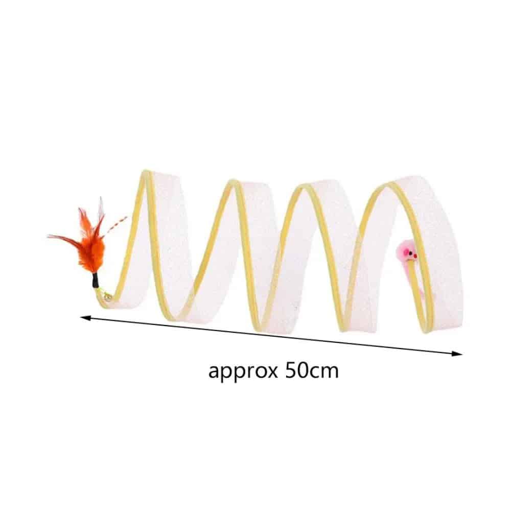 Hold din kat underholdt og aktiv med denne foldbare S-formede tunnel. Med en sjov mus i den ene ende og en klokke med fjer i den anden, er denne interaktive tunnel den perfekte tilføjelse til din kats legetøjssamling. Uanset om din kat elsker at springe, gemme sig eller jage, giver dette legetøj mange måder at lege på og stimulerer deres naturlige instinkter.