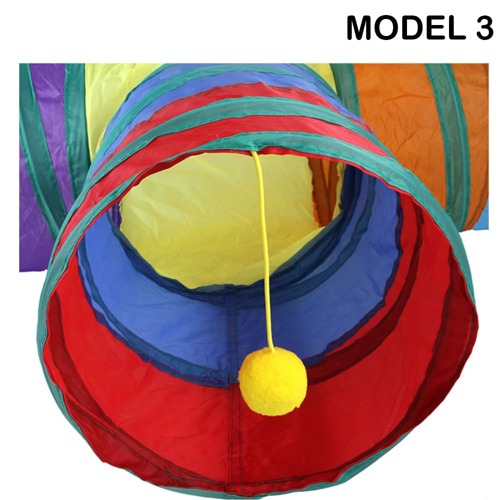 Model 3 (25 x 80 + 30 cm) En multifunktionel tunnel med en sideåbning, der giver din kat endnu mere at udforske. Perfekt til katte, der elsker skjulelege.