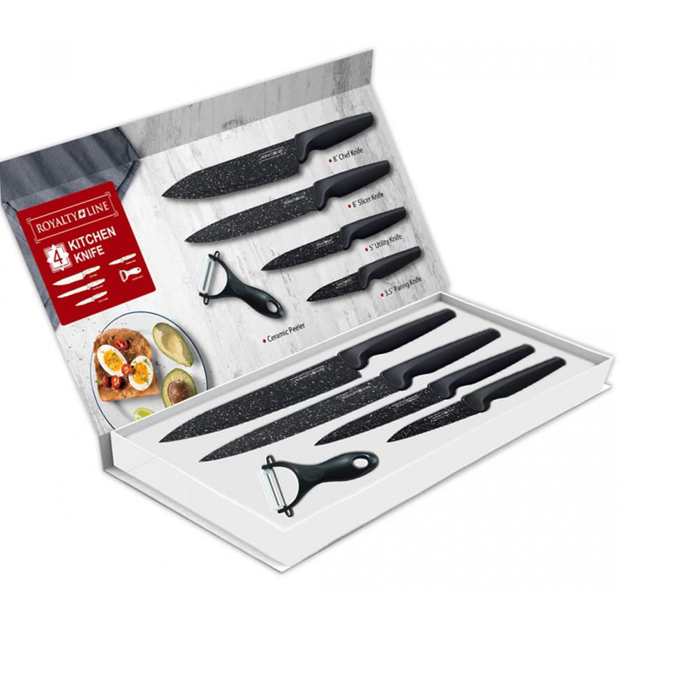 Knivsæt (4 dele + skræller) Royalty Line m/marmorbelægning