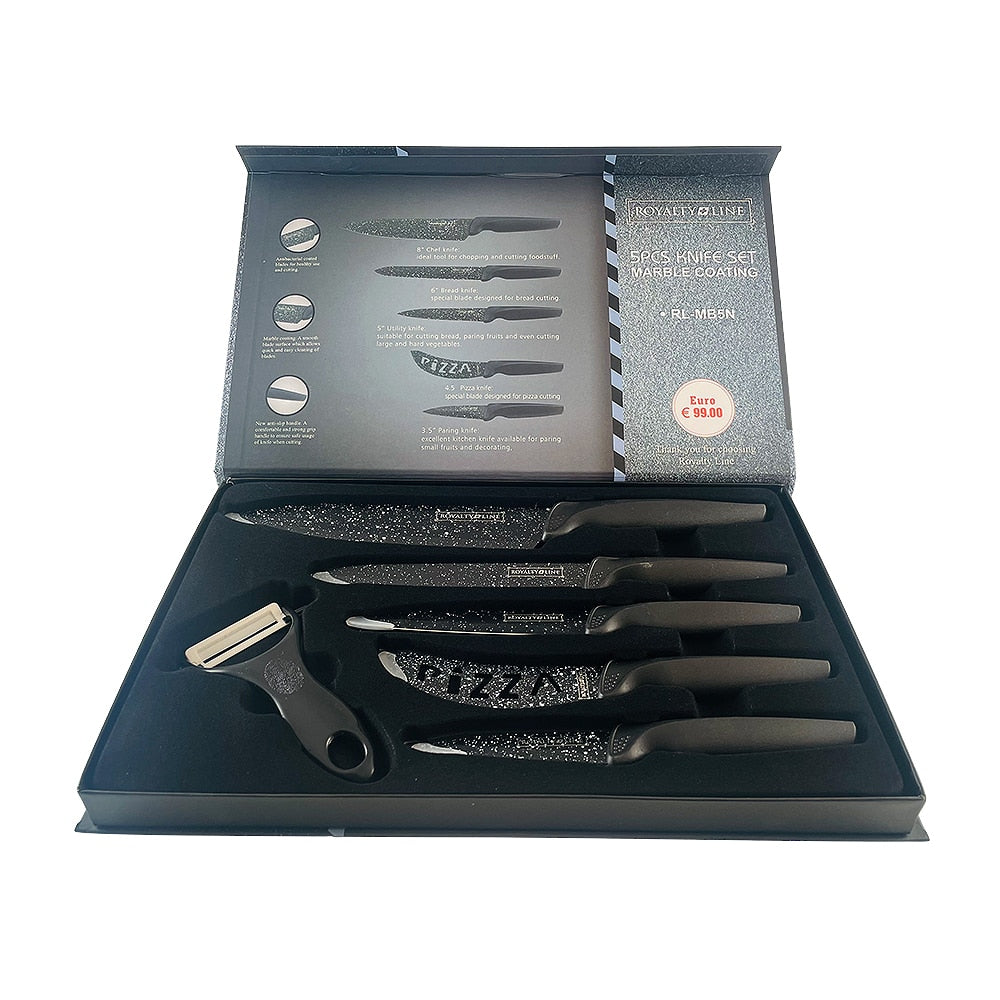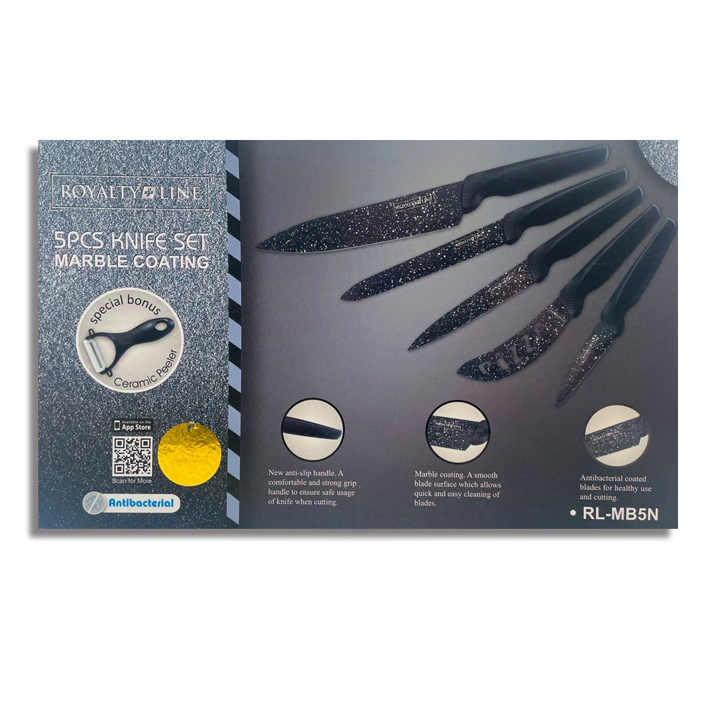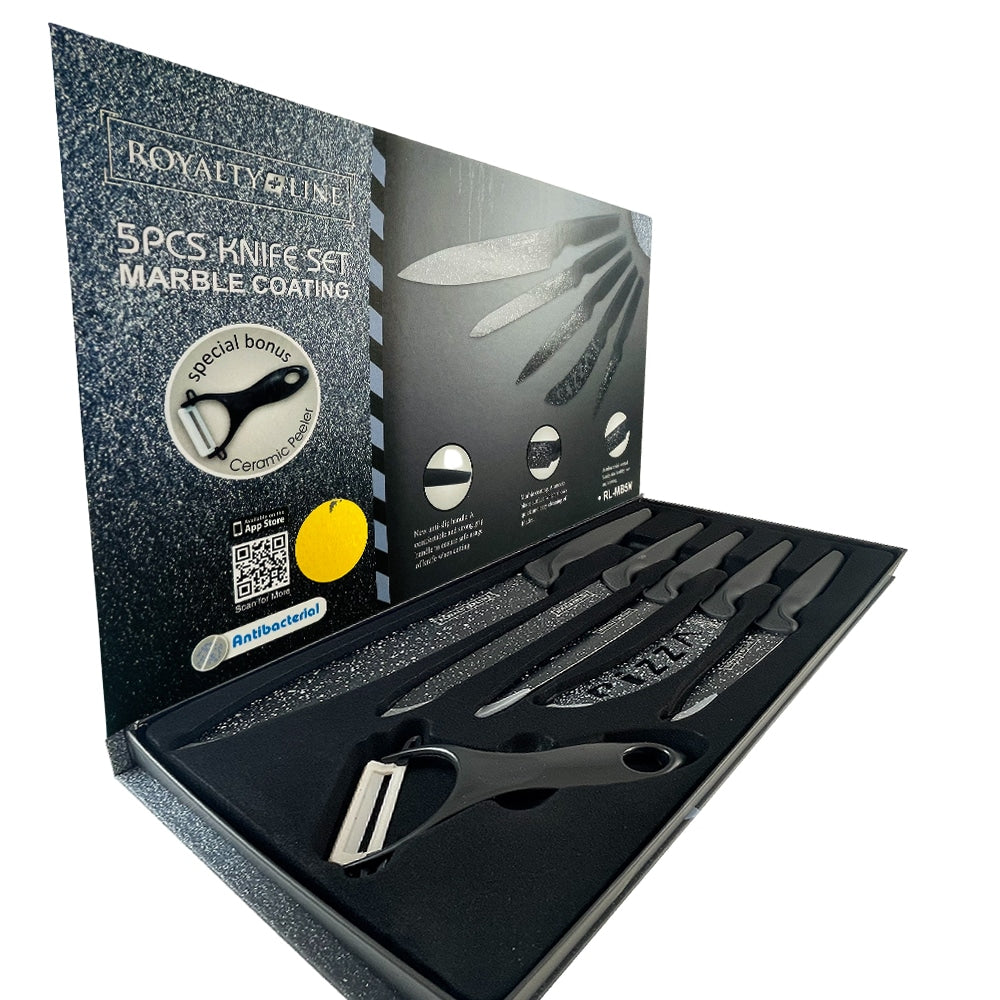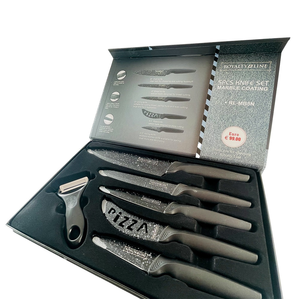 Knivsæt (5 dele + skræller) Royalty Line m/marmorbelægning
