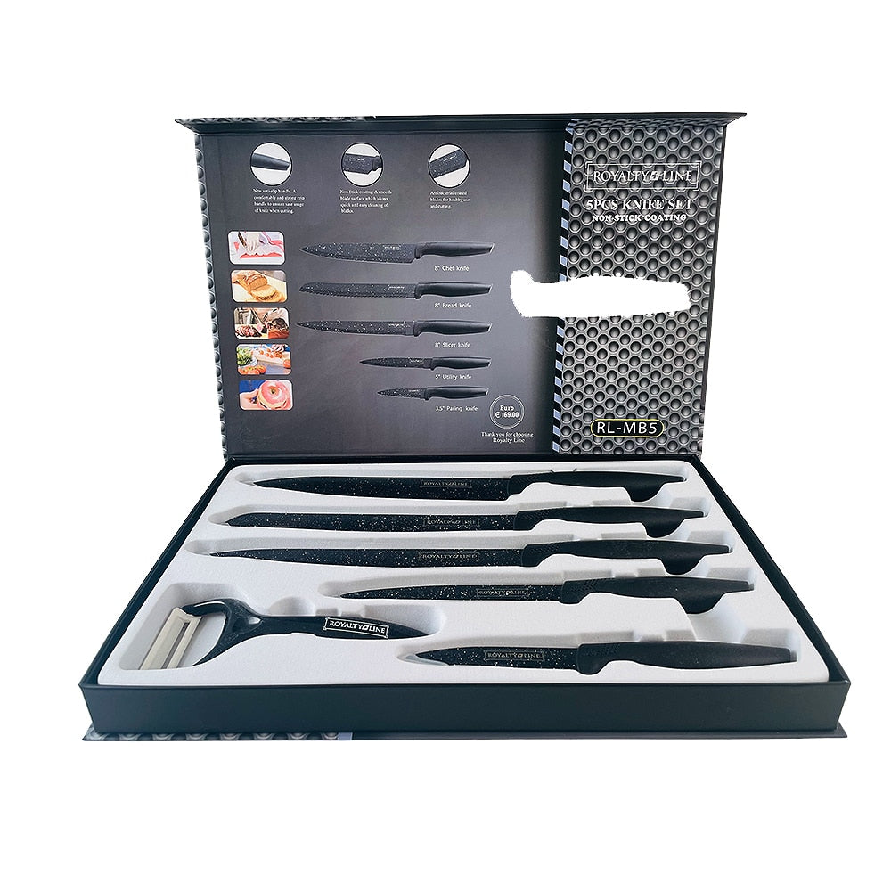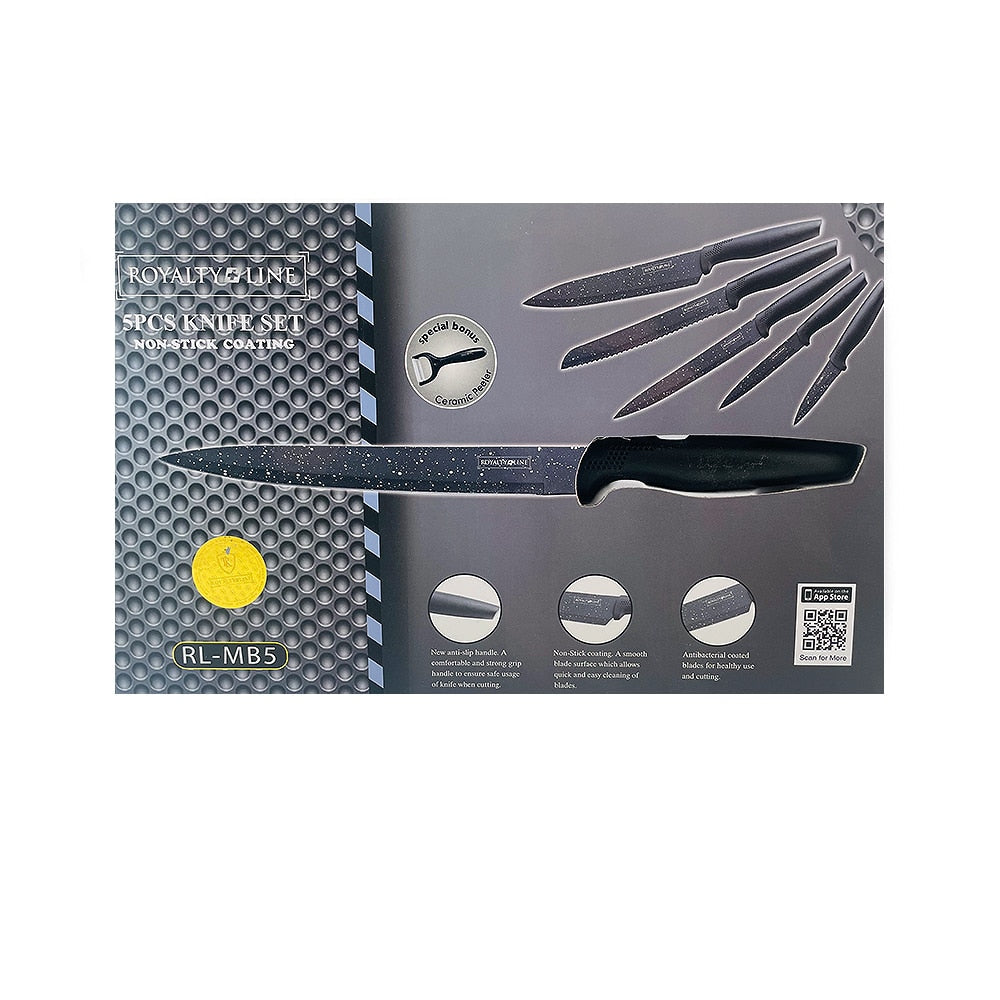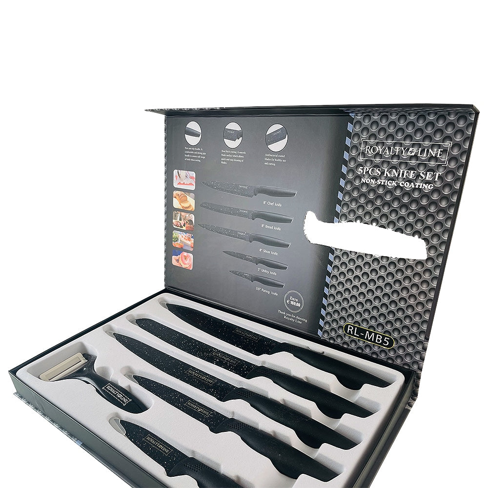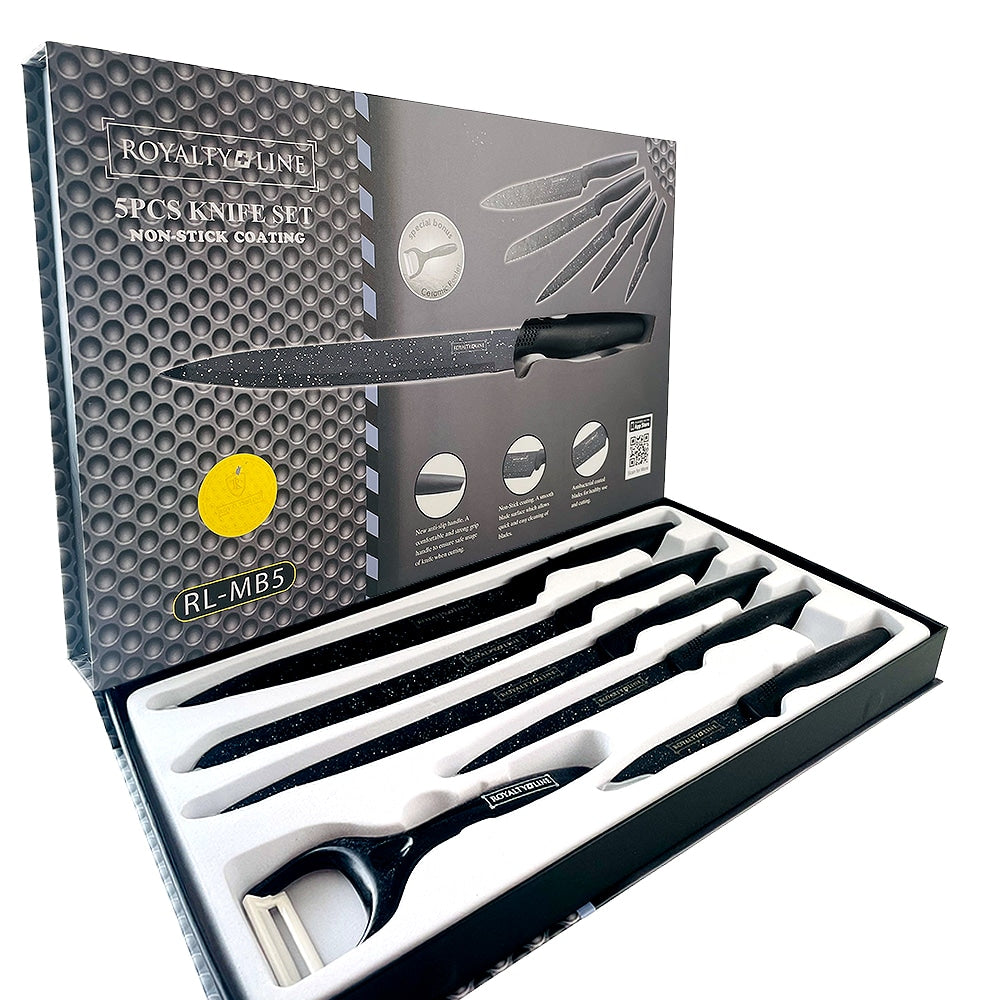 Knivsæt (5 dele + skræller) Royalty Line m/marmorbelægning