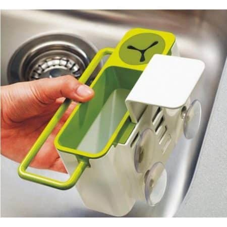 Rigtig smart og fin køkkenvask holder til opbevaring af opvaskebørste, karklud og hvad man ellers har liggende.