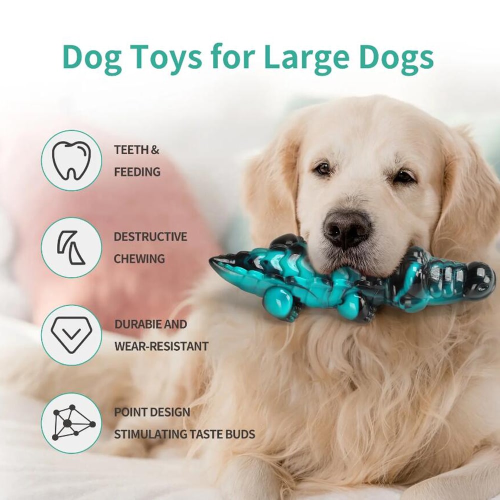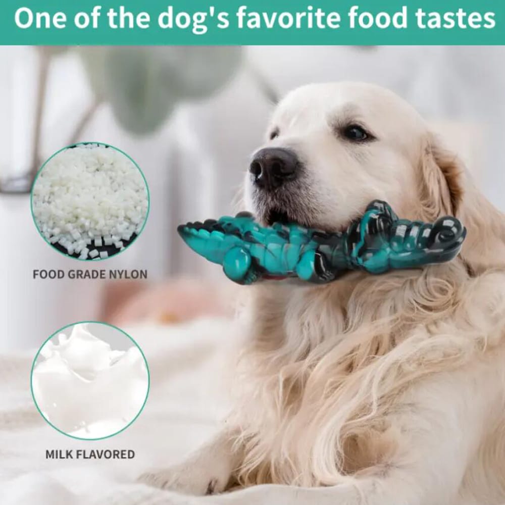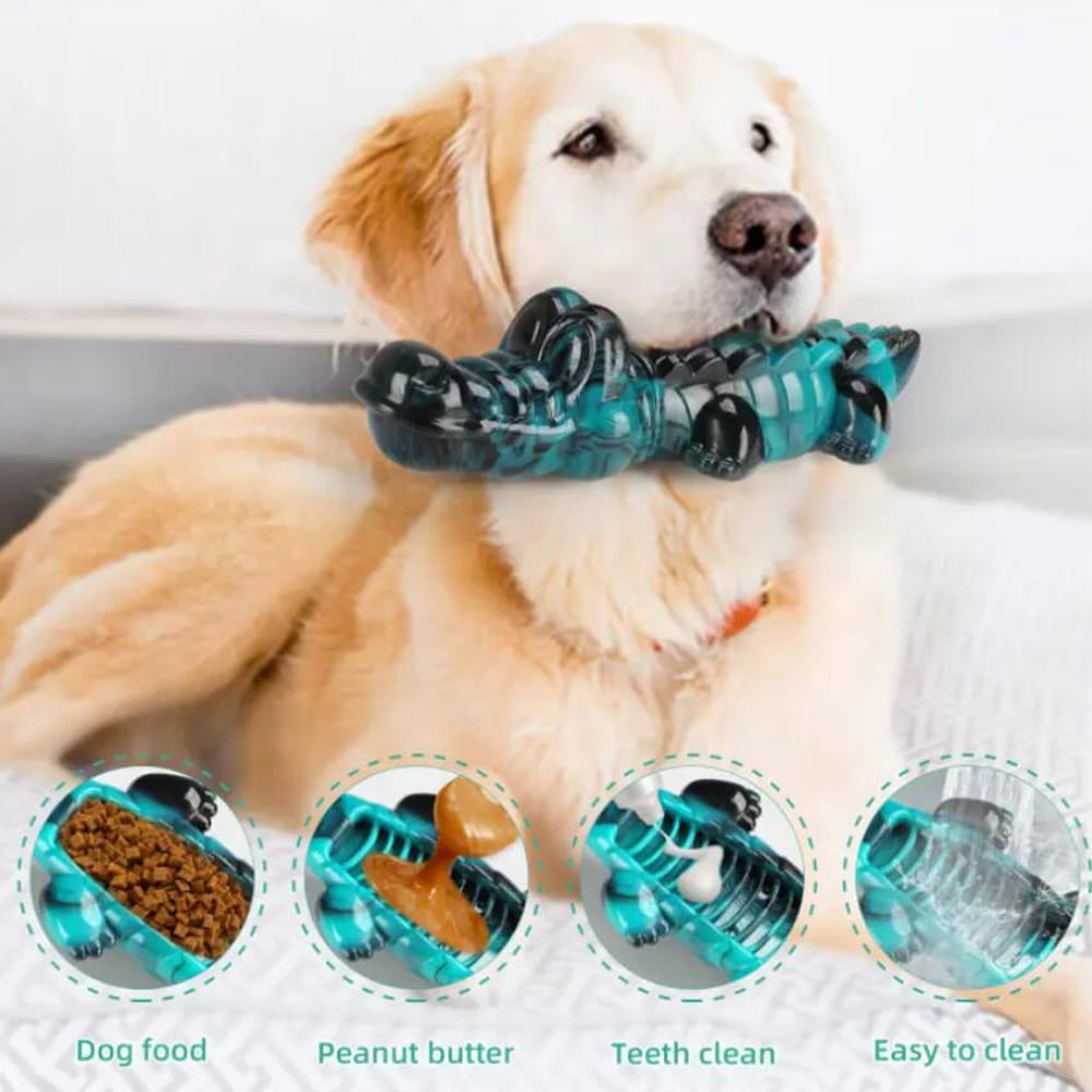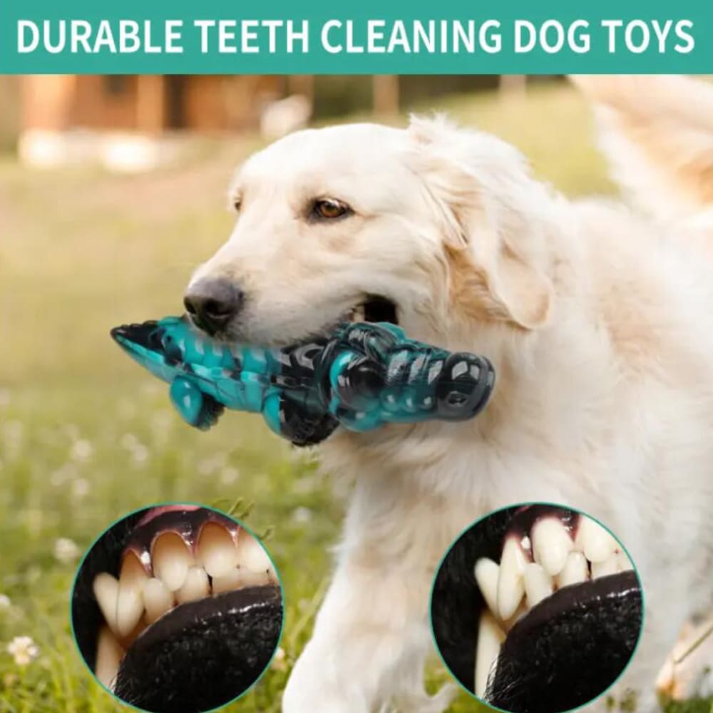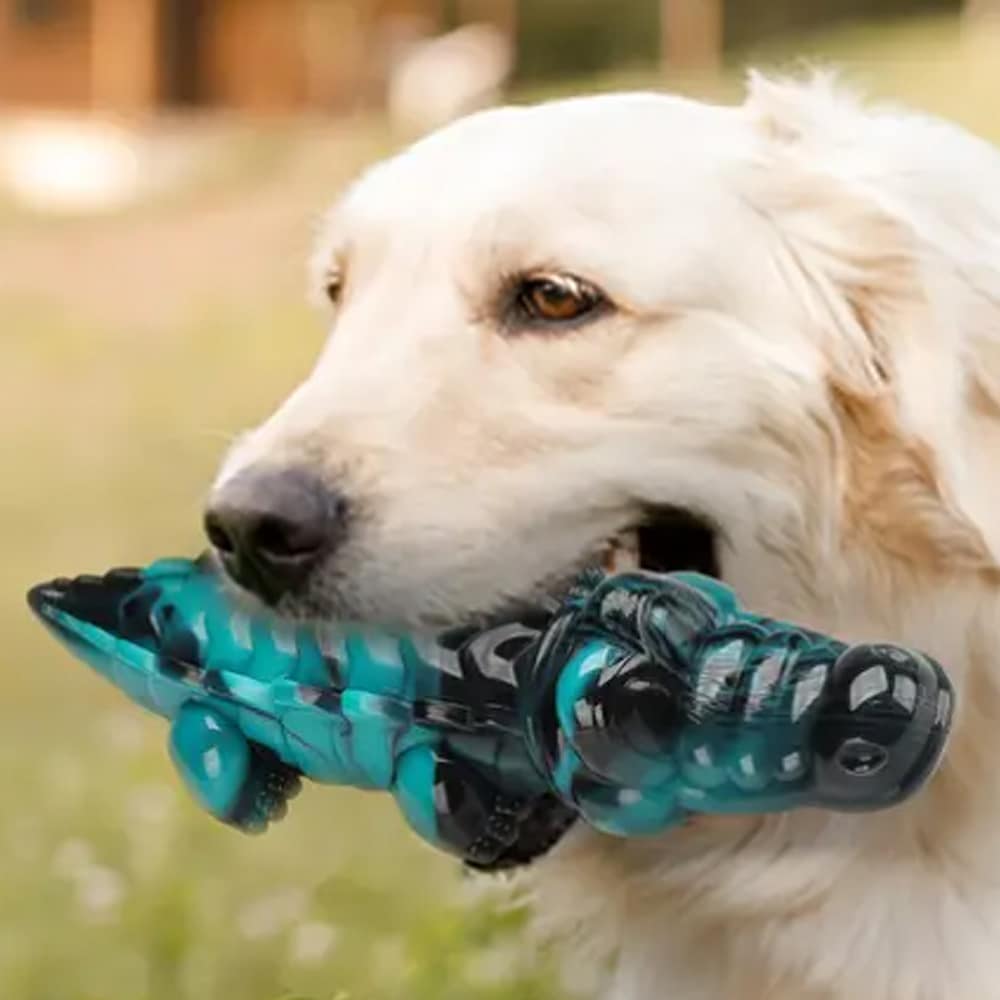 Vores krokodilleformede tyggelegetøj er lavet af et ekstremt holdbart materiale, der gør det næsten uforgængeligt, selv for de mest aggressive tyggere. Legetøjet er perfekt til at holde din hund underholdt og samtidig sikre sunde tænder og tandkød. De strukturerede overflader fungerer som en naturlig tandbørste, der hjælper med at fjerne plak og reducere risikoen for tandkødsproblemer.