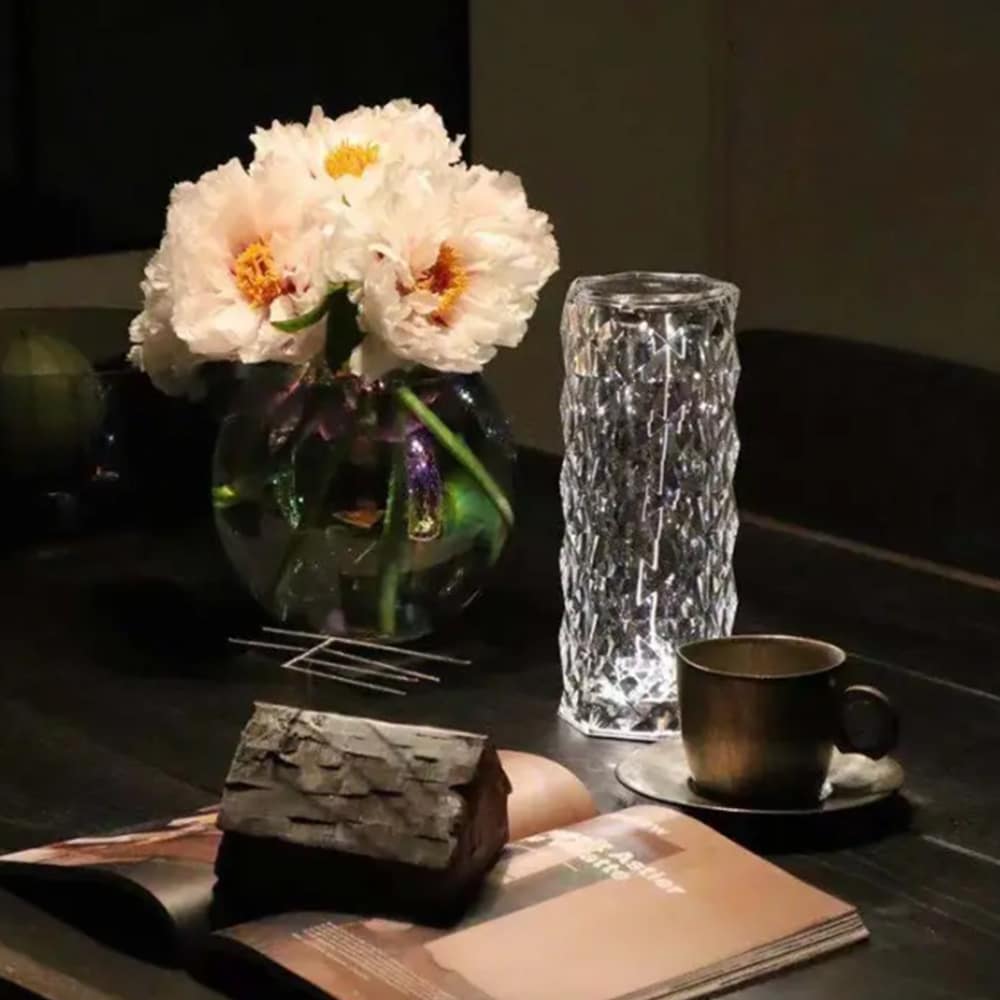 Touch bordlampen har et flot og simpelt diamant design når den er slukket og et farverigt og levende lys der projekteres ud i et flot og smukt mønster, når den er tændt. En stilfuld lampe i akryl som du kan dekorere dit soveværelse, stuen, gangen eller børneværelset med og som skaber en hyggelig, behagelig og romantisk atmosfære når den står der og lyser.