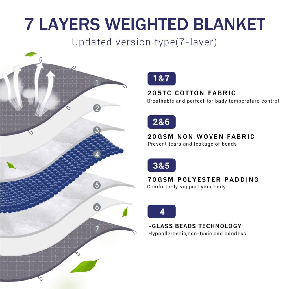 Vores 7-lags kugledyne / tyngdedyne indeholder små glasperler med en diameter på ca. 1 mm. Du mærker slet ikke de små glasperler da de er pakket ind i polyesterfibre, og dermed undgås også støjgener fra perlerne. Størrelsen og fordelingen af de små mikro glasperler gør, at tyngdedynen falder tæt og tungt omkring kroppen.