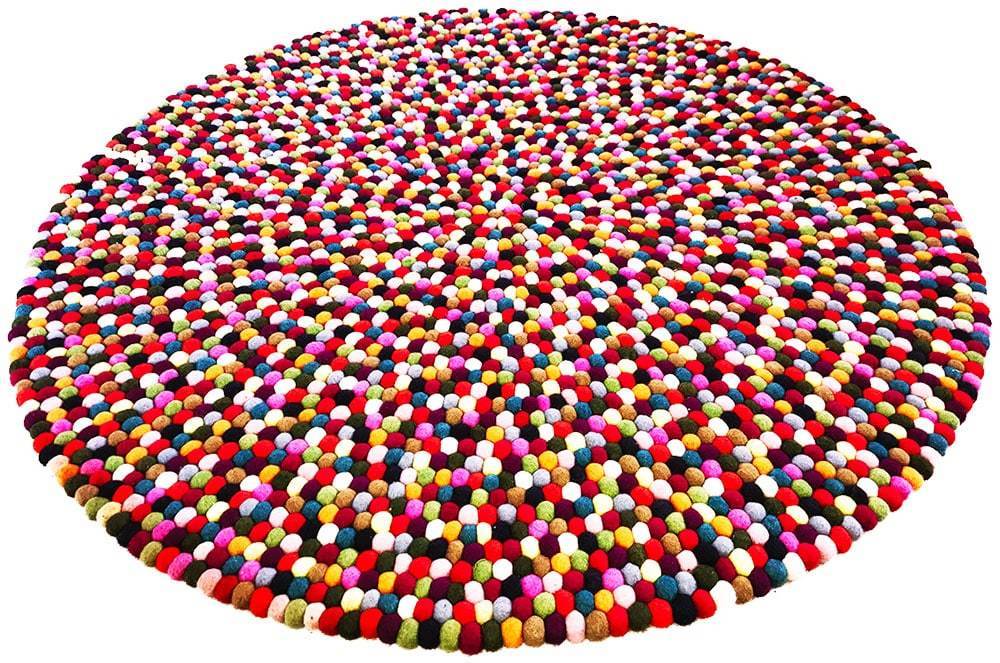 Giv dit hjem noget af et farveboost med dette livlige og dragende kugletæppe. Du får her et klassisk, nordisk, multifarvede kugletæppe, i højeste kvalitet og håndlavet af 100% ren uld. Tæppets runde design gør, at det passer perfekt under sofabordet, i soveværelset, børneværelset eller entreen.