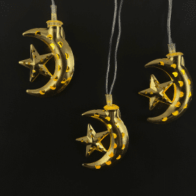 Virkelig smuk og stemningsfuld LED-lyskæde på 3,5 meter som giver en hyggelig atmosfære uanset årstid og hvor end du ønsker at bruge lyskæden. Lyskæden har smukke, guld farvede måner og stjerner der hver er fordelt med 15 centimeters afstand og hver med en diameter på 4 centimeter. Kæden er kun beregnet til indendørs brug.