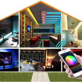 LED Strip lyskæde 5 meter med Bluetooth, Fjernbetjening og MusiksensorC