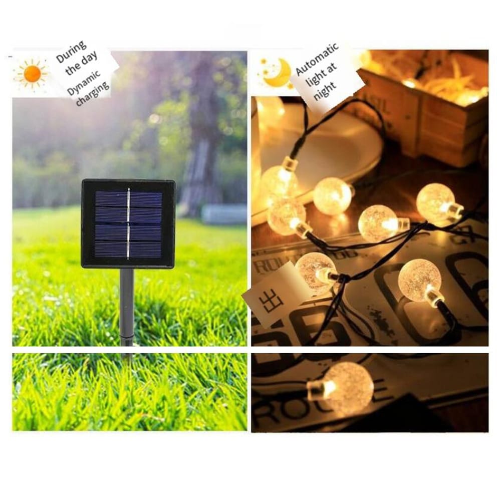 Lyskæde m/30 kugler - oplades via solcellepanel for opladning