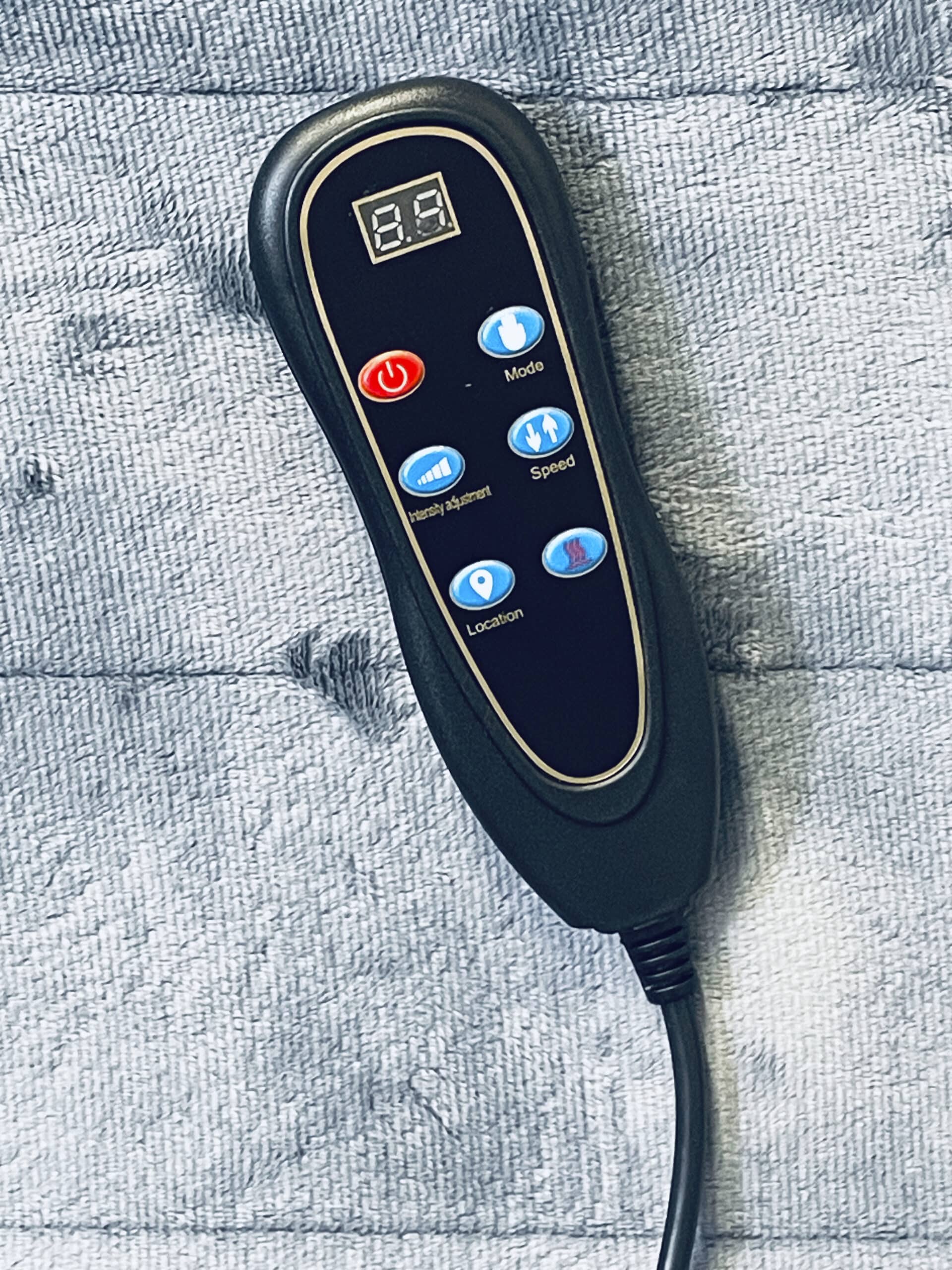 Vores massageenhed er udstyret med syv præcisionsmassagehoveder, der omhyggeligt er designet til at give dig en dybdegående og beroligende massageoplevelse i ryggen og lænden. Disse hoveder arbejder sammen for at lindre spændinger og ømhed. Du kan vælge mellem ni forskellige hastigheder for at tilpasse massagen til dine individuelle behov. Den indbyggede varmefunktion øger ikke kun komforten, men bidrager også til smertelindring og forbedret blodcirkulation, hvilket gør massagen endnu mere effektiv og afslappende.