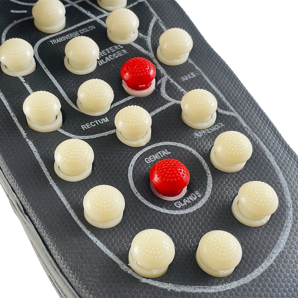 Bring din krop i balance med disse massagetøfler der med hver 41 massagepunkter på hver sko yder akupressur og stimulerer de forskellige reflekszoner under dine fødder, løsner spændinger i fødderne, afhjælper migræne og hovedpine, øger energien i kroppen, giver afslappede fødder og øger kroppens immunforsvar.
