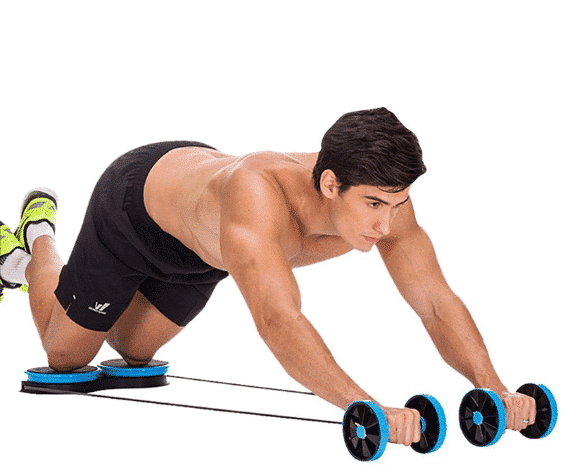 AB Roller Wheel består af en platform med to roterende bløde overflader hvor du kan placerer fødderne eller knæerne, to kraftige elastikbånd, samt to håndtag med hjul. Selvom der er tale om et simpelt træningsredskab kan du lave ikke mindre end 44 forskellige øvelser og vælge mellem 6 forskellige modstandsniveauer.