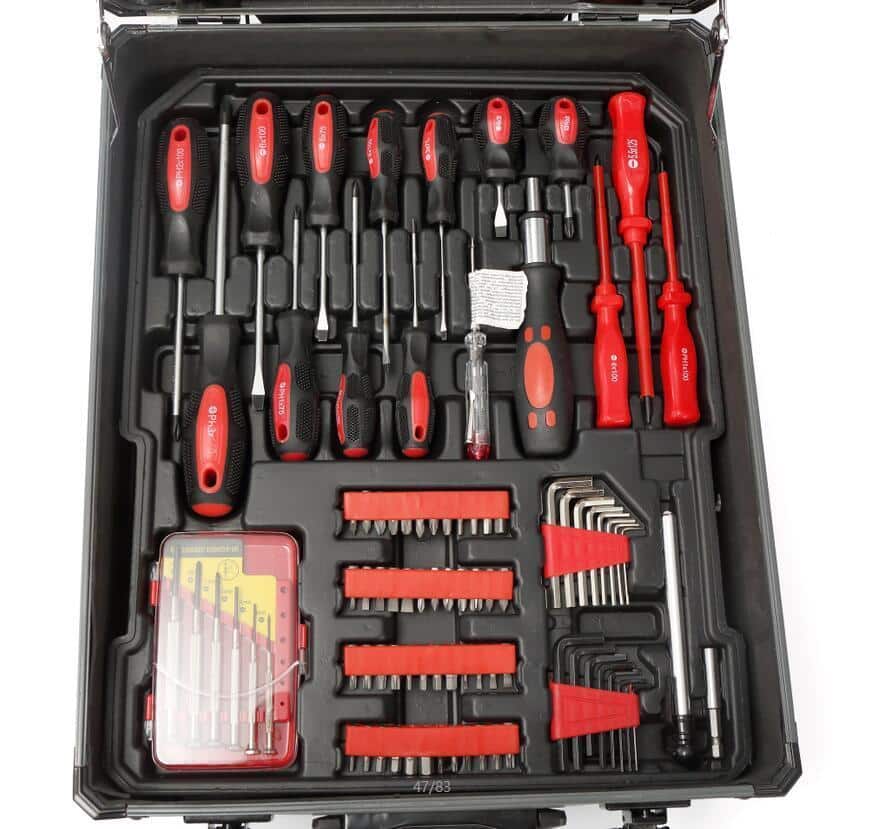 - 14 Screwdrivers (-) 3*75, 3*100, 4*100, 5*75, 6*38, 6*100, 5*125 (+) 3*75, 3*100, 4*100, 5*75, 6*100, 8*150, 6*38