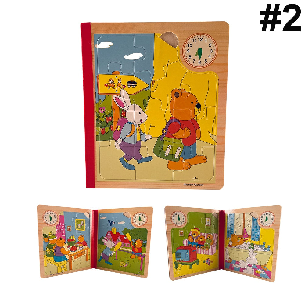 Med 11 robuste puslespilsbrikker pr. side, vil hvert puslespil, når det samles korrekt, afsløre en sød historie, der venter på at blive fortalt. Hver færdigsamlet scene måler 13 x 17 cm, den ideelle størrelse for små hænder og store opdagelser.