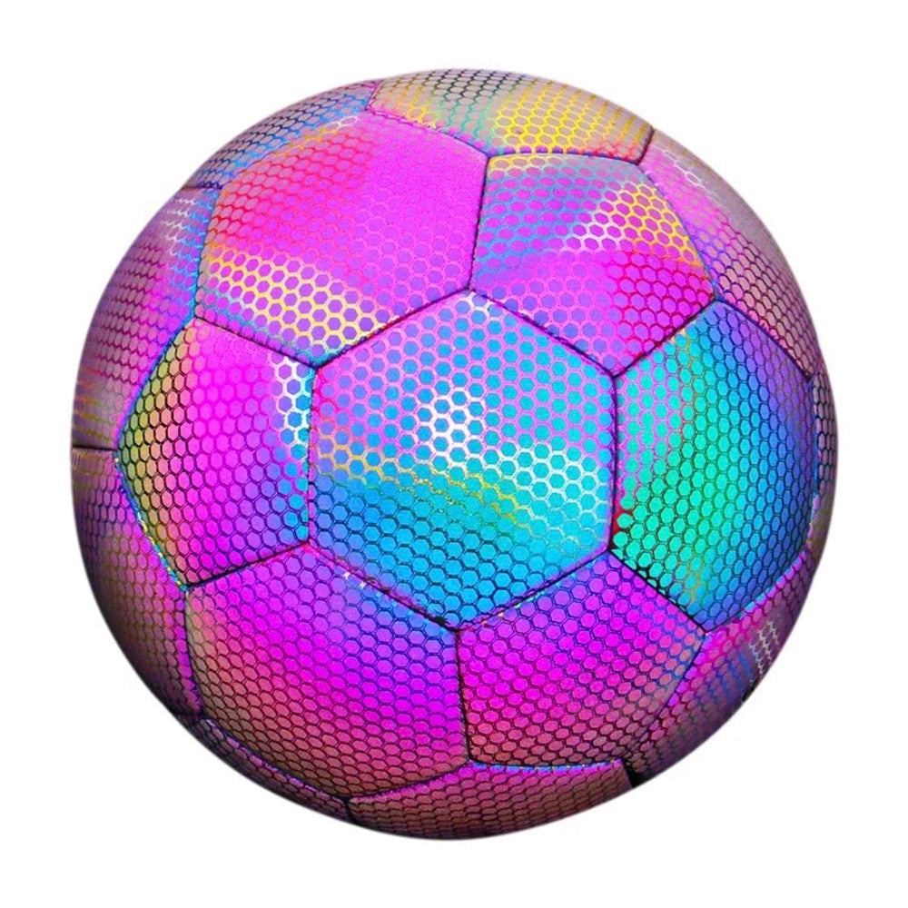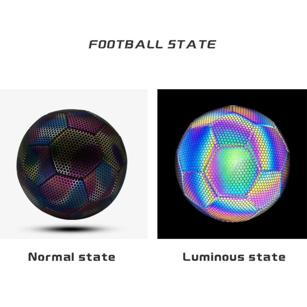 Det højkvalitets reflekterende PU-læder sikrer enestående holdbarhed og en professionel spiloplevelse. Bolden er designet til at være lysende synlig under alle lysforhold, hvilket gør den til en perfekt følgesvend for sene træningssessioner eller spil i tusmørke. Med sin iøjnefaldende farve og skinnende overflade kan du let følge bolden, som den flyver over banen.