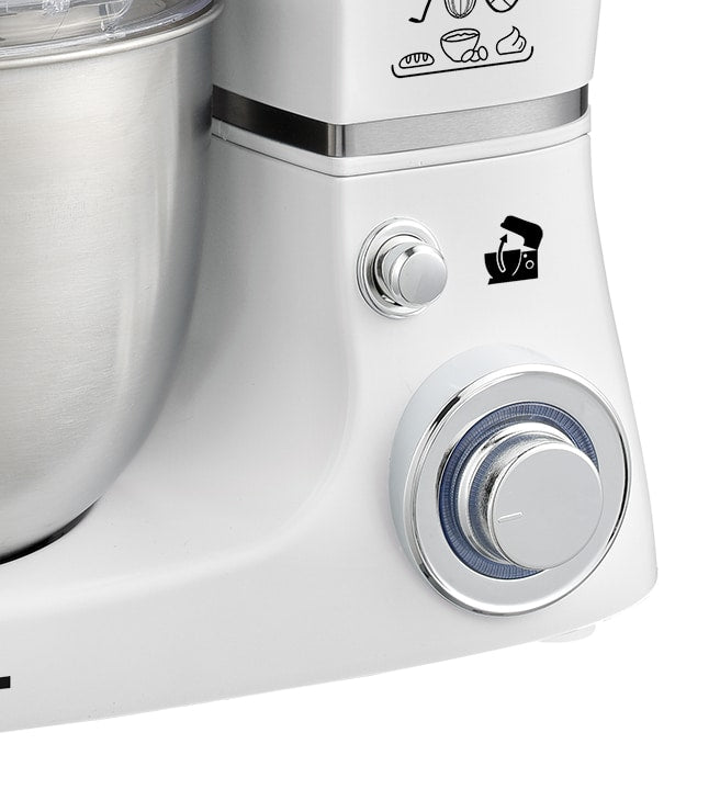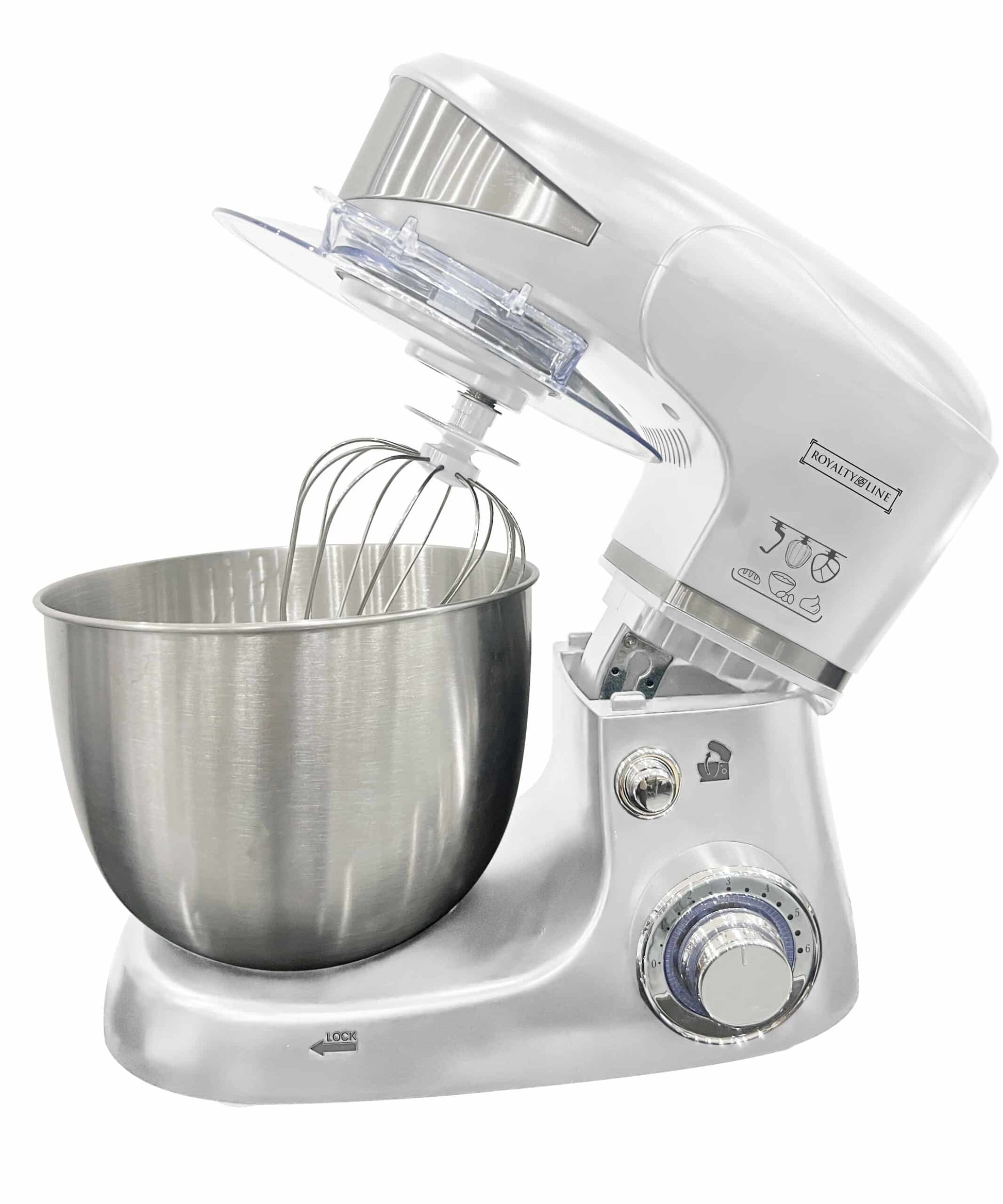 Du får her en alsidig, højtydende, men alligevel kompakt og elegant køkkenmaskine fra Royalty Line, der er velegnet til at piske, ælte og blande forskellige ingredienser. Med til maskinen følger der piskeris, dejkrog og røre krog.